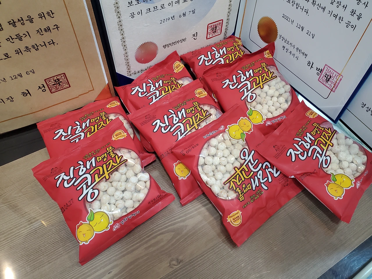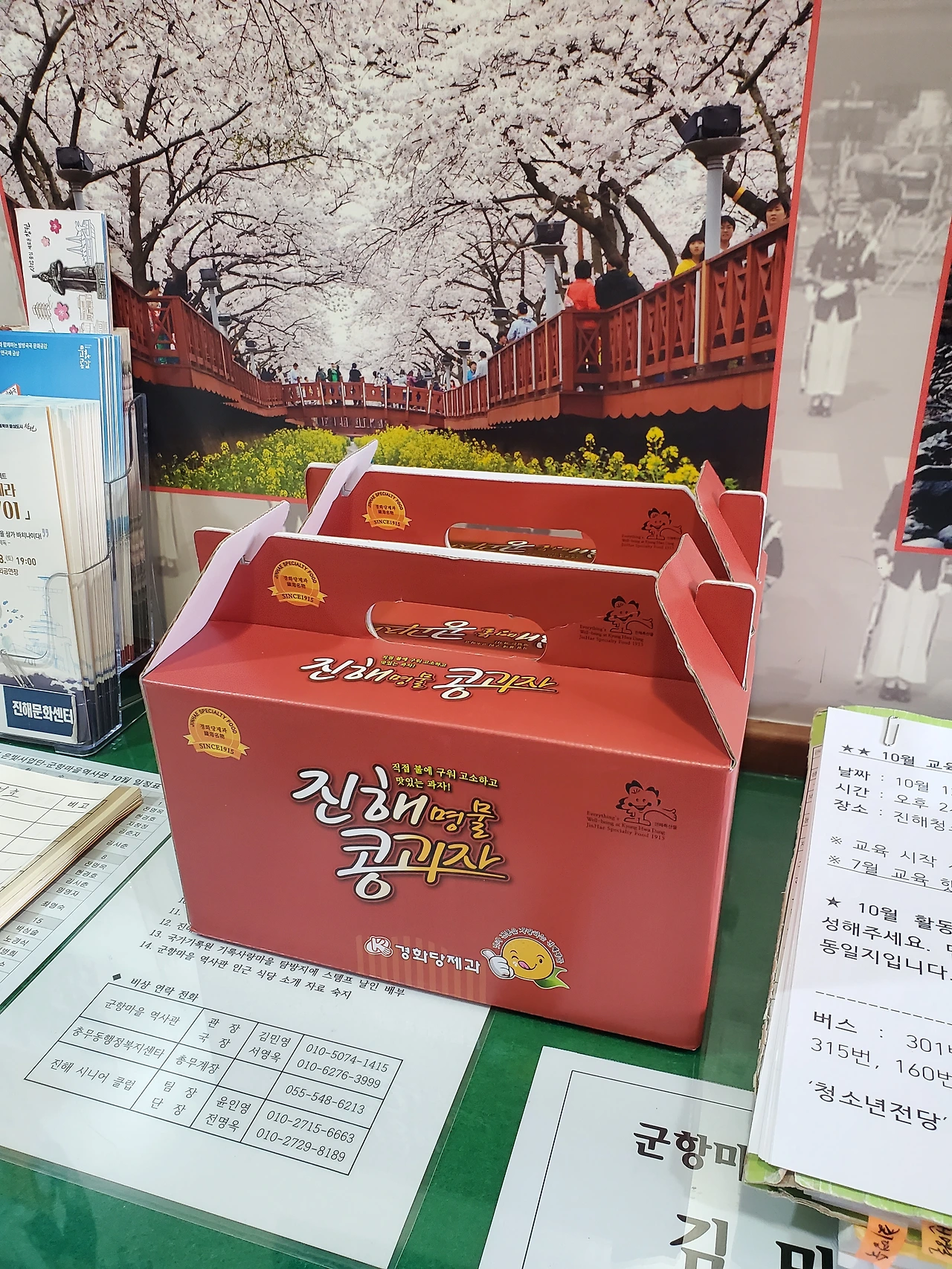 입구에서 이걸 발견하고 말았다. 이건 정말 내 기억에 왜 남아 있었는지 모르겠는데 봉지 안에 있는 콩과자가 내 기억을 몽땅 들어 올렸다. 4살 때였던 것 같다. 많아야 5살 정도였을까? 당시 사진을 지금도 가지고 있는데... 난 외할아버지 집 앞 구멍가게에서 2원 주고 사 먹었던 기억이 난다. 지금 저게 한 봉지 1,000원이니 500배가 된 거다. 그 가격을 기억하는 것도 정말 신기한 일인데, 그 어린 시절 화폐 가치를 기억하고 있었던 것도 놀랍기만 하다. 아무튼 난 이걸 2 상자나 샀다. 한 상자는 제주에 있는 엄마에게 보내드리려고... 추억이 샘솟듯 솟아나시려나?