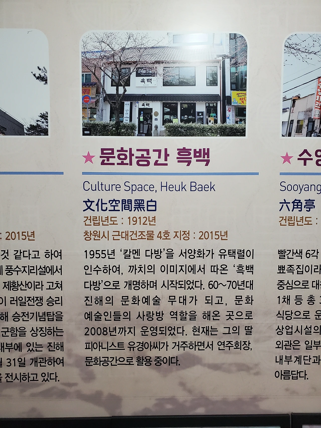 그리고 할아버지의 설명이 시작됐다. 이 건물은 원래 노인정이었는데 이렇게 안내소가 됐다고. 그리고 중요한 건 근대화 역사를 보존하고 운영하는 주체가 창원시도, 진해구도 아닌 지역주민이라는 것이다. 최초 제안도 그들이 했고, 운영도 그들이 하고 있다. 지자체의 재원 조달을 위해 기초적으로 장소를 지원하라는 요구에 이 노인정을 쓰기로 해서 시작된 보존사업이라는 것이다. 안타까운 일인데 시니어들께서 이렇게 직접 행동에 옮기신 것만 해도 다행인 일이 아닌가 싶다.