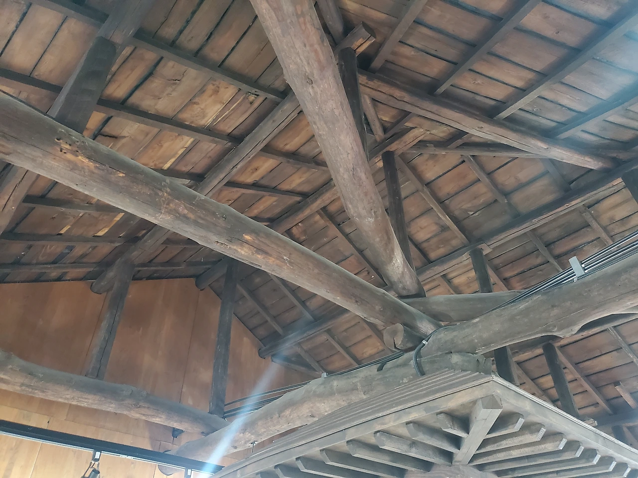 천정을 보라는 할아버지. 왠지 익숙하지 않은 모습인 것 같다 싶었는데 역시나 싶었다. 이 건물은 족히 100년이 됐다고... 이 짜임새를 보라. 이건 건축학적으로도 보존 가치가 매우 높을 것 같았다. 왜색이 짙은 건물이겠지만 말이다.