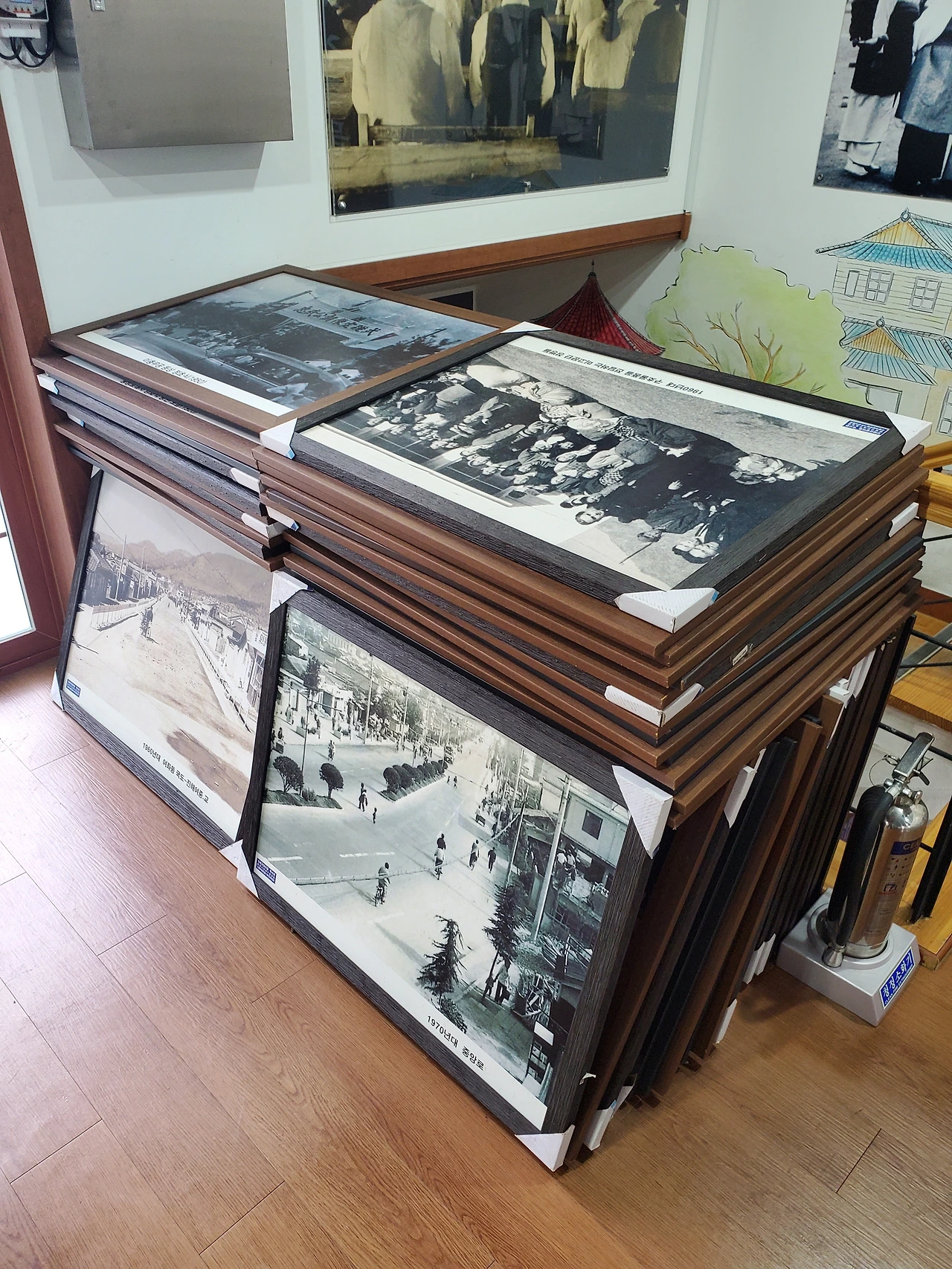 이렇게 좋은 사진들이 가득한데 전시할 공간이 없어서 문제라는 할아버지. 지금의 진해는 해군이 빠져나가 해군도시라는 개념도 지우듯 사라져 버렸고 인구도 너무 줄어서 재정이 부족하여 이런 민간의 활동에도 도움을 많이 주지 못한다고 했다. 산더미처럼(과장인가?) 쌓인 액자들이 관람객 눈에 띌 수도 없는 현 여건이 아쉽기만 하다.