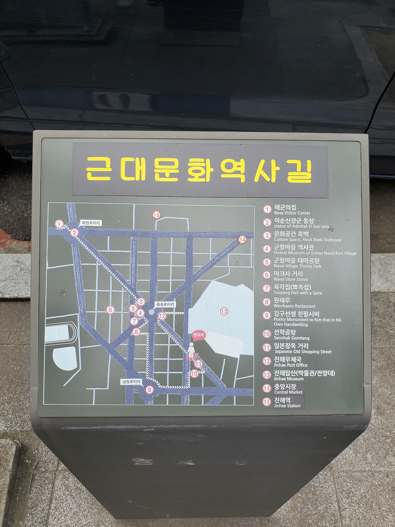 역시 예상했던 대로 진해의 개화기 시절을 테마로 관광지로 조성되어 있었다. 진해에서는 근대문화역사길이라는 타이틀로 오래된 건축물 관람코스를 조성했다. 중앙로터리를 기준으로 코스를 만든 것 같은데 직접 그 코스를 따라 걸어 보려니 안내물 같은 게 없어서 길을 따라 걷는 게 쉽지 않았다. 그런 부분이 개선되면 좀 더 완성도 높은 근대문화역사길이 되지 않을까 싶다.