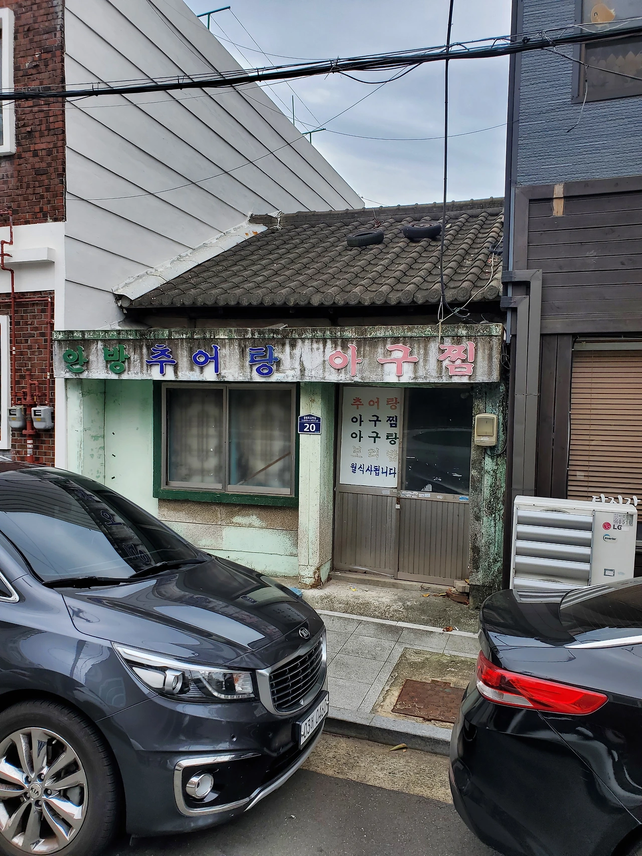 진해 곳곳에 오래된 흔적이 남아 있었다. 지금은 영업을 하는 것 같진 않았는데 내가 연재하고 있는 <빗맞아도 30년> 맛집 시리즈에 나올 법한 식당인 거다. 영업하지 않는 곳에서 아쉬움에 쩝쩝거리며 사진 몇 장 촬영하고 다음 장소로 이동했다.