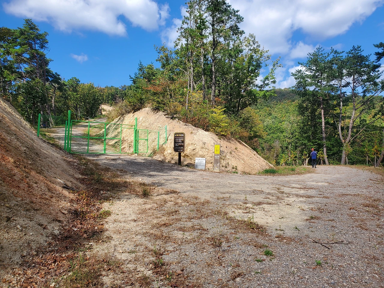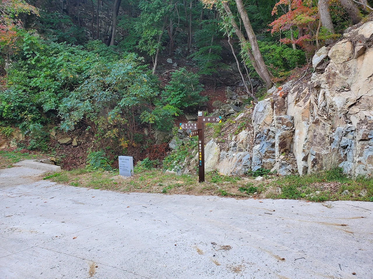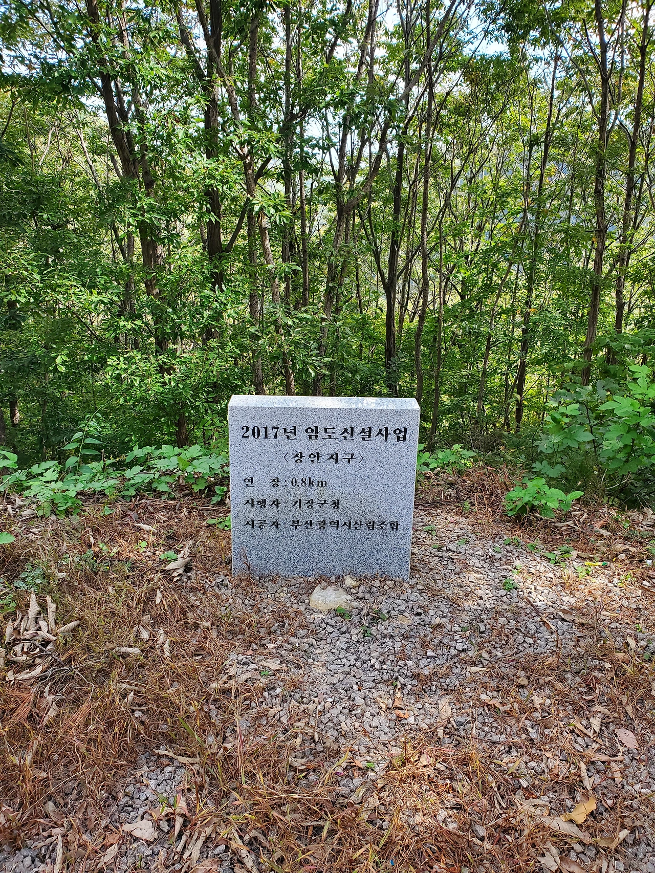 임도는 새로 조성된 듯했다. 가파른 경사를 절개하여 조성된 임도는 비가 많이 올 경우 유실될 가능성이 짙어 보였다. 군데군데 이정표도 박아둔 걸 보면 임도를 공개할 계획이 있었던가 보다. 그런데 이 길엔 차량이나 오토바이 진입을 금지하고 있었다.