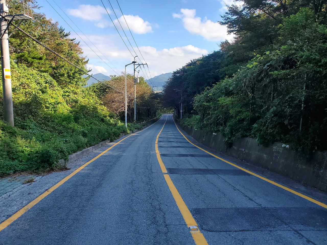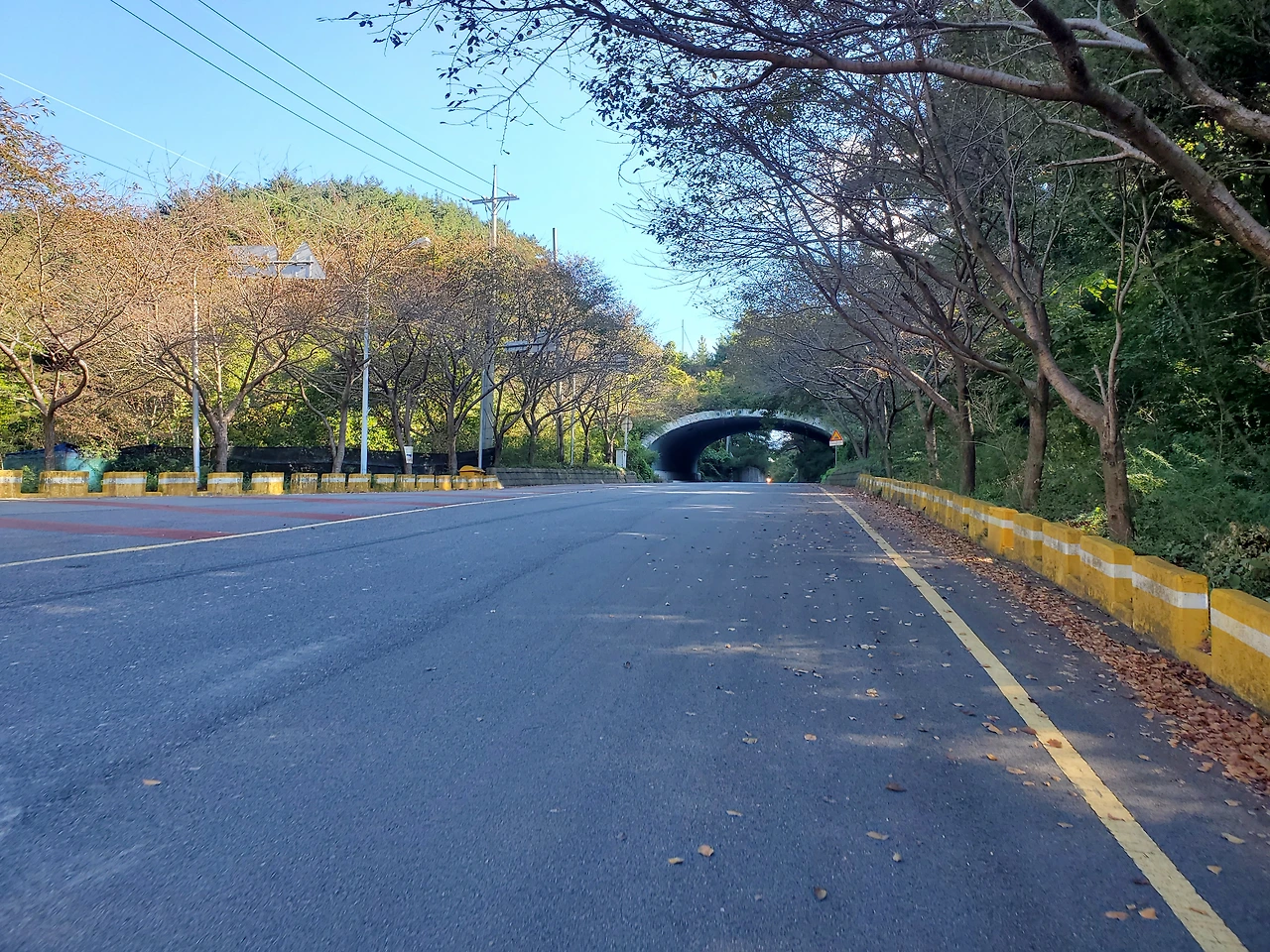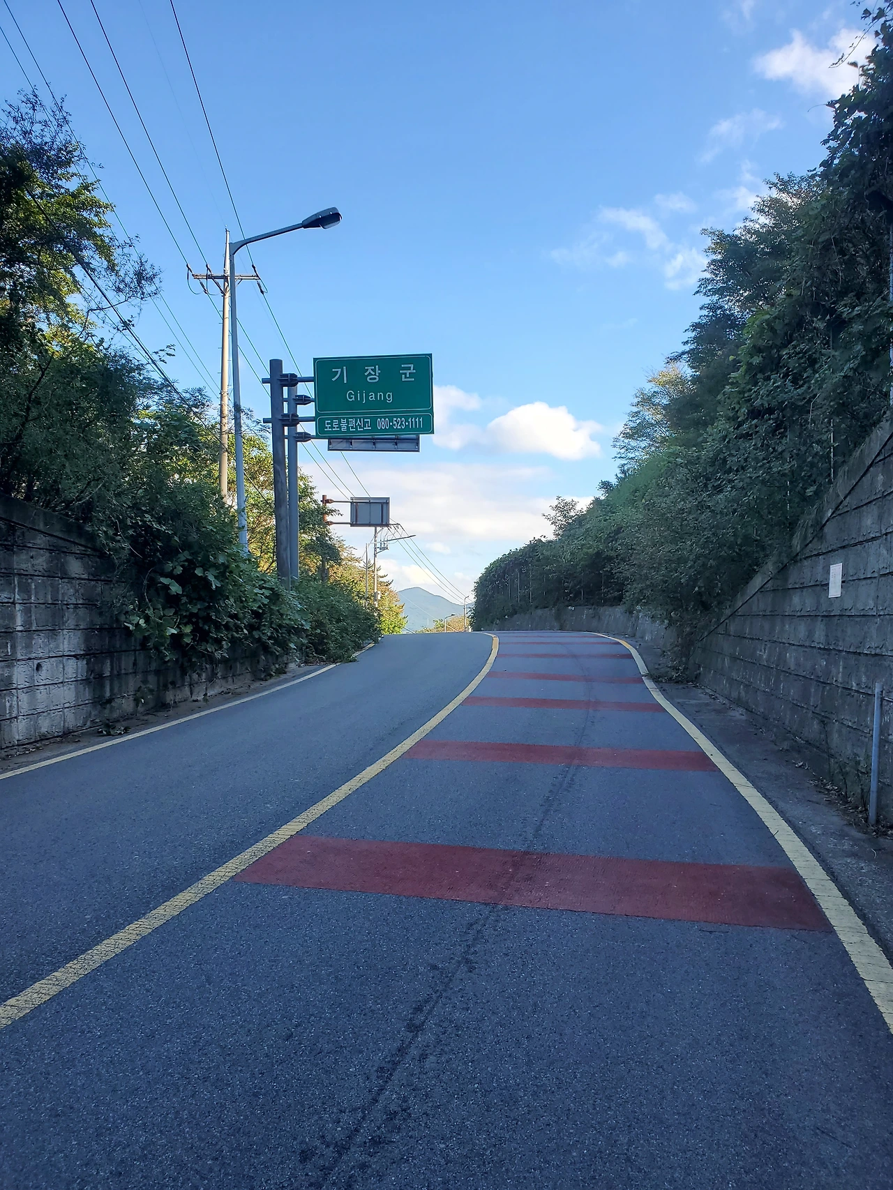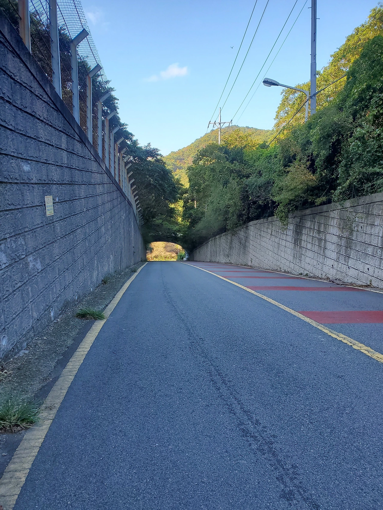 개좌고개 정상에 올라 앞뒤 도로를 촬영해 봤다. 기장 쪽에서 오르는 길은 경사가 약하다. 지난번에 로드바이크 타고 올라올 때 개좌고개를 대수롭지 않게 생각했었는데 양쪽 업힐의 편차가 엄청나다.