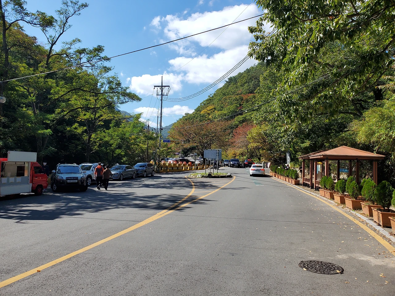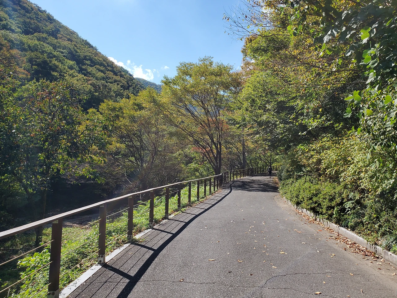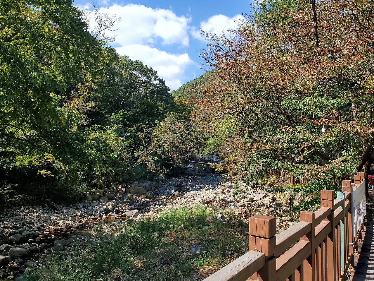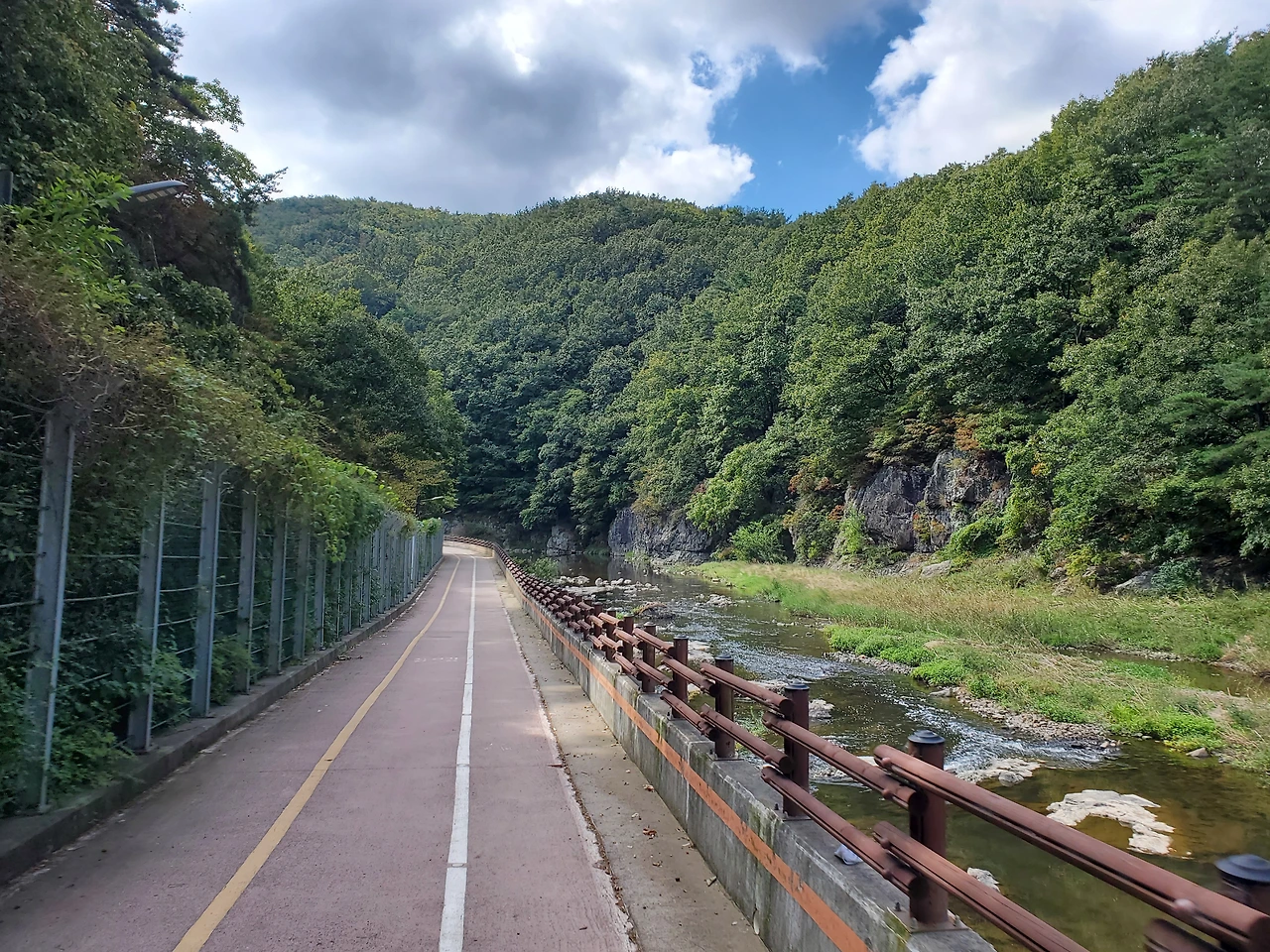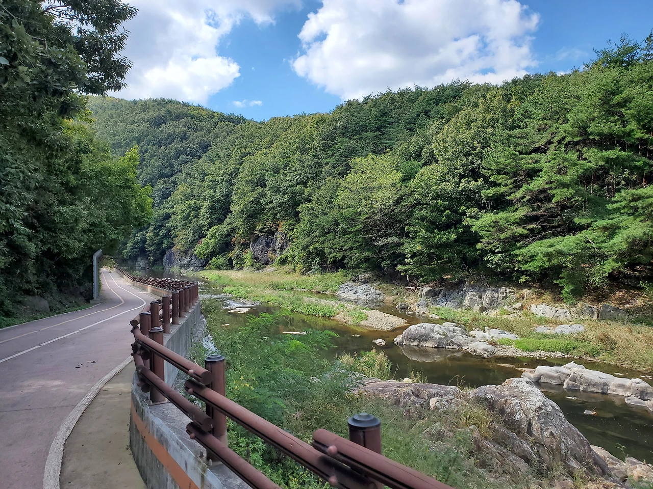 2차선 도로는 너무 좁아 자전거가 함께 달리긴 위험해서 인도를 타야만 했다. 도로 옆으로 장안사계곡이 아름답다. 인터넷을 보니 여름엔 이 계곡이 몸살 깨나 앓을 듯했다.