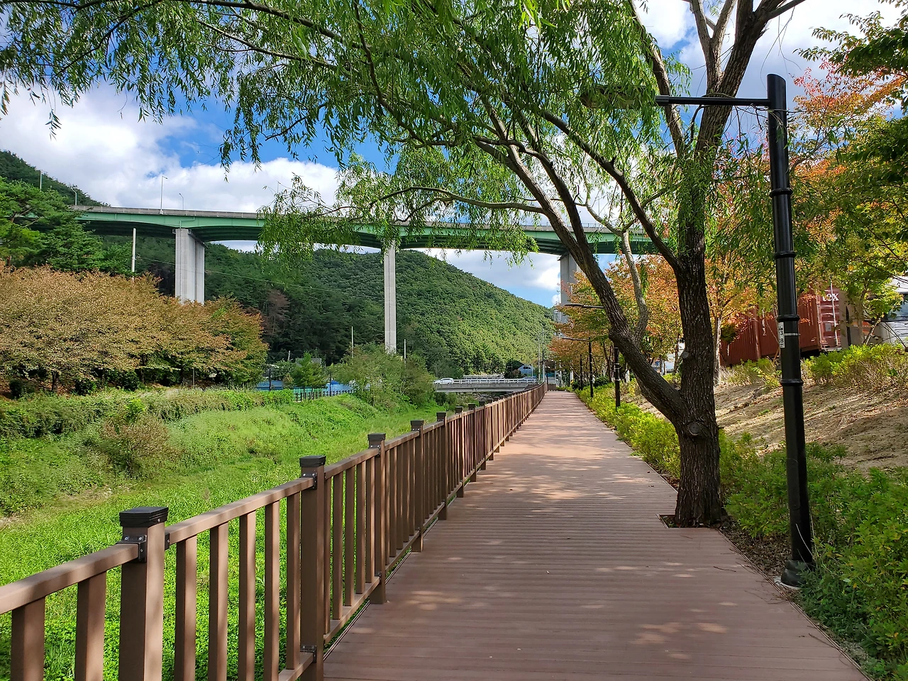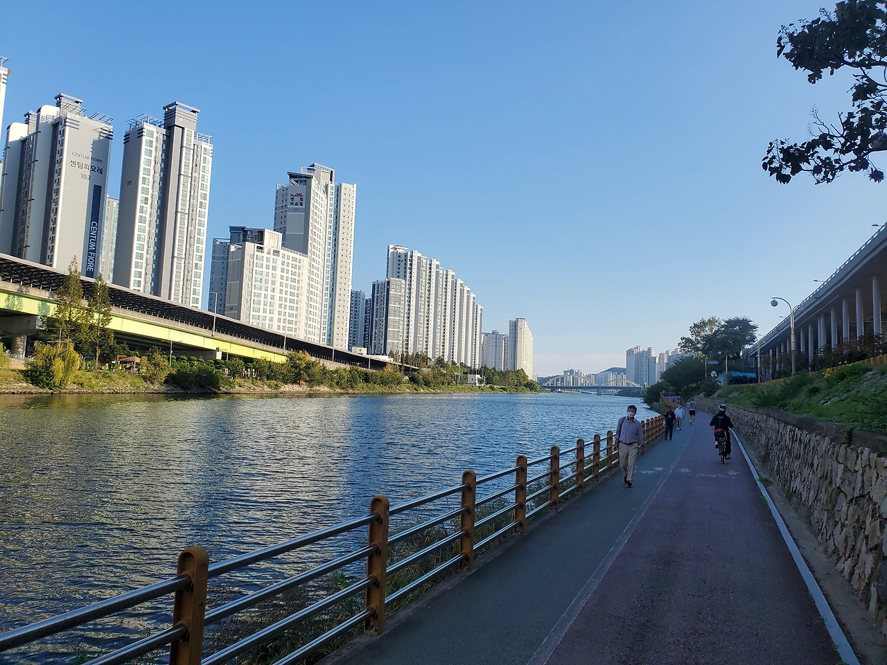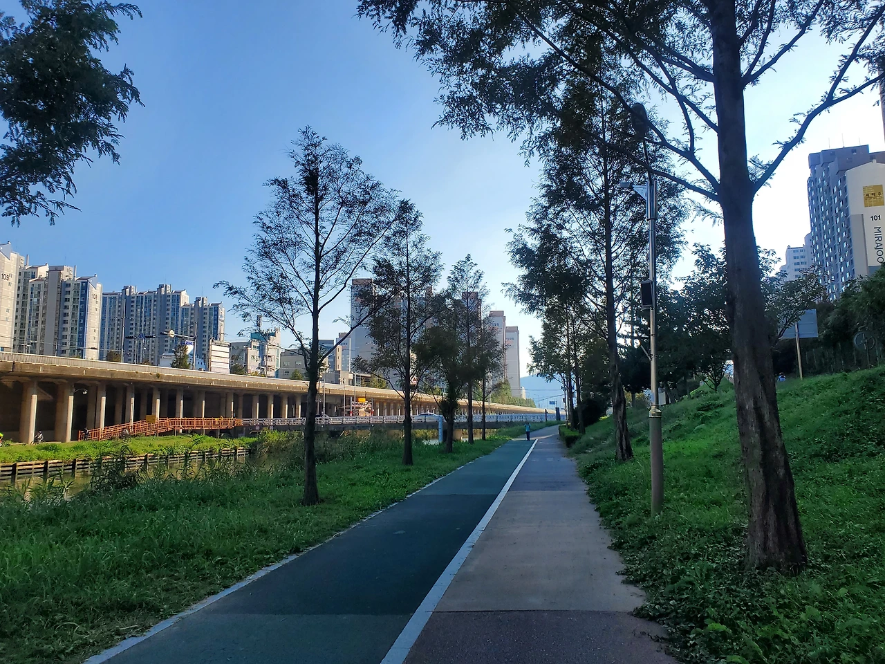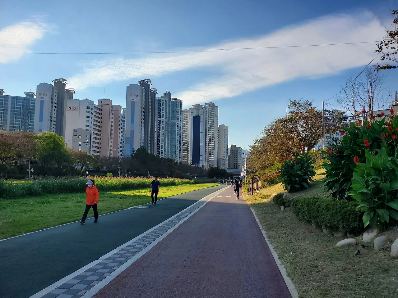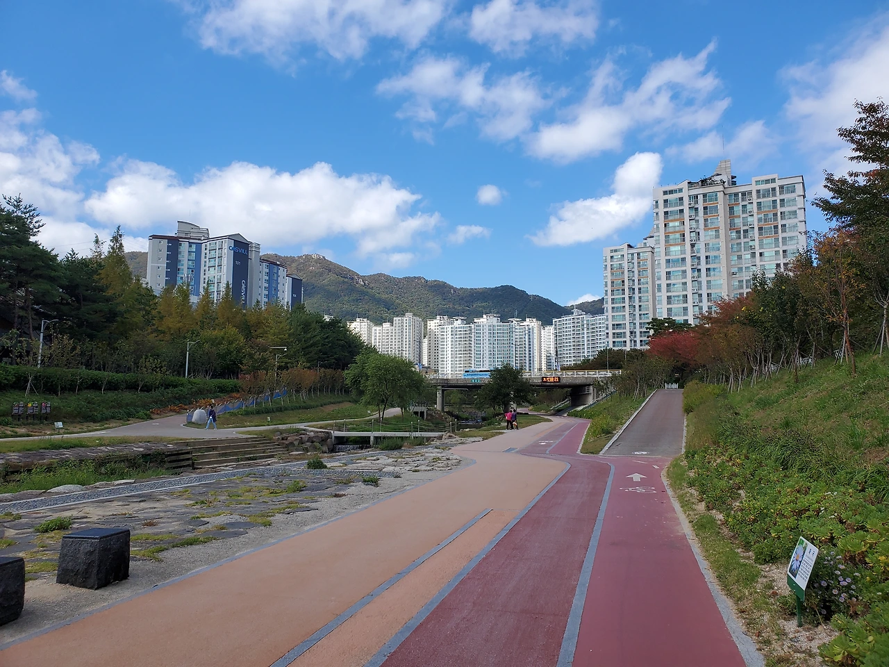 정관신도시로 접어드니 개천을 따라 자전거도로가 잘 조성되어 있다. 한 달 전이었던가? 임랑해변에서 정관신도시로 들어오는 자전거도로가 꽤 잘 되어있다 싶었는데 신도시 내부까지 제대로 조성된 거다.