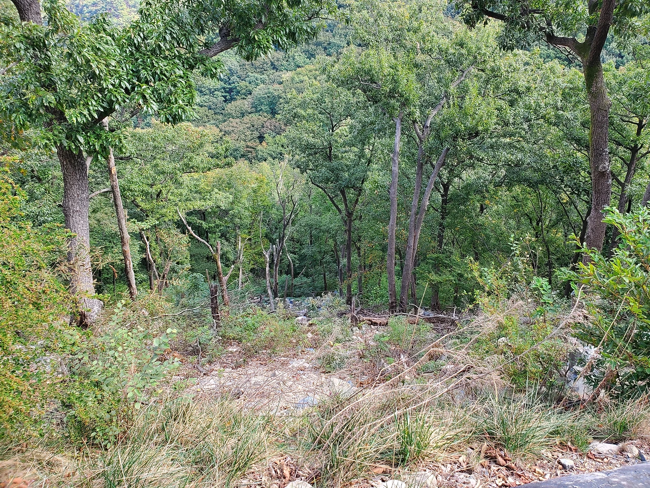 삼각산 정상 부근까지 갔는데 숲이 우거져 자전거를 타고 들어가긴 위험해 보였다. 등산객도 별로 다니지 않았던 모양이다. 그쪽 코스가 꽤 좋아 보였는데... 그 길을 타고 가면 옥수수마을이라는 곳으로 이어져 있는 듯했다. 다음에 등산으로 도전해 보기로~