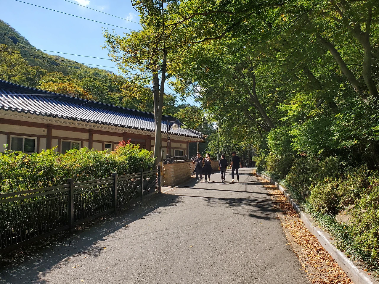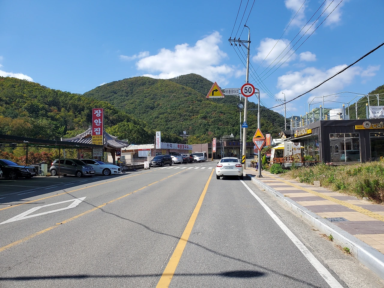 장안사로 향하는 길, 안데르센 테마파크 조성지를 지났다. 상가들이 조금씩 보이는 걸 보니 장안사계곡 유원지에 진입한 듯했다.