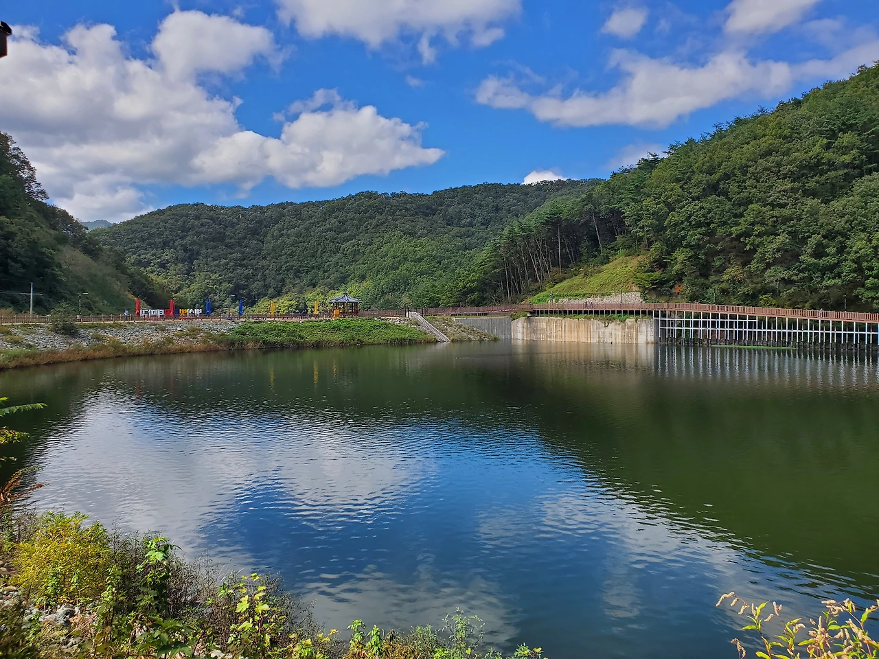 물줄기를 따라 올라가니 꽤 큰 규모의 저수지가 나타났다. 주변으로 산책로 조성이 잘 되어있다. 데이트 코스로도 좋을 것 같긴 한데...