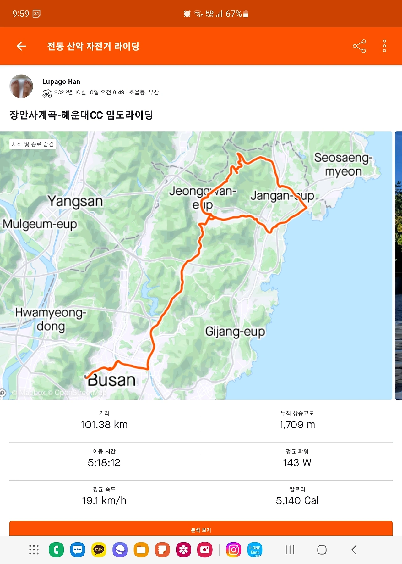 BTS 공연이 있던 날 밤, 사직구장 위로 솟구치는 불꽃놀이를 감상하며 일요일 라이딩 대상지로 기장 장안동의 삼각산 임도 라이딩을 확정했다. 안데르센 테마파크가 조성되고 있는 곳인데 얼마 전 근처 갔다가 발견한 임도인데 어찌나 궁금한지 언젠가 꼭 다녀오리라 생각했던 코스다.