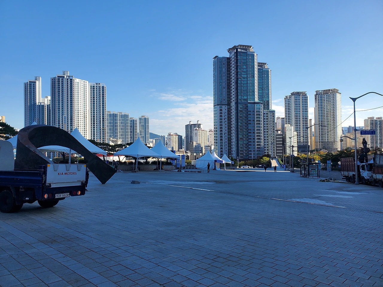 일요일 아침, BTS 공연이 쓸고 간 사직구장 앞 광장은 아직도 정리가 한창이었다.
