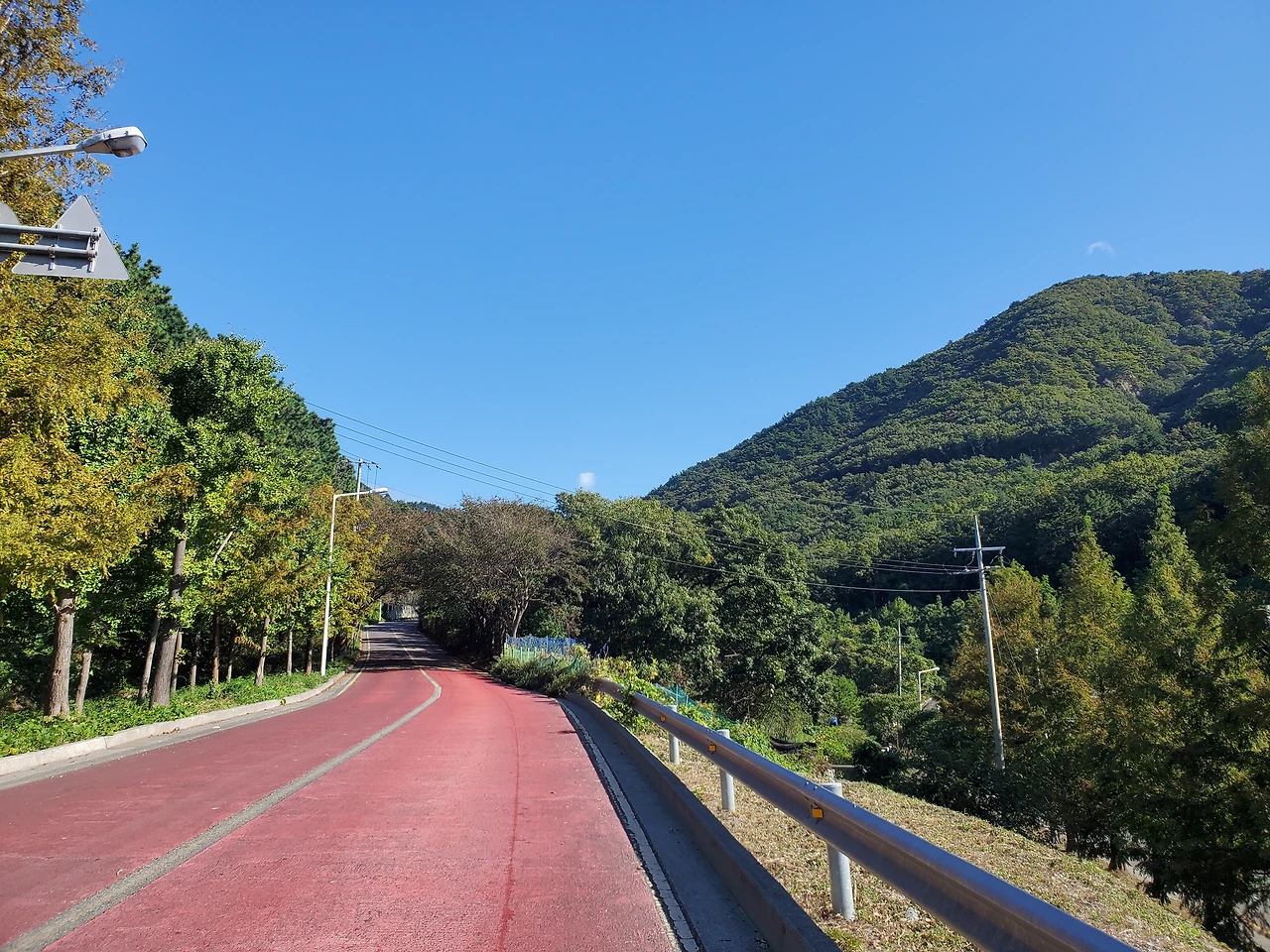 올 때 거쳐왔던 곰내재와 개좌고개를 넘었다. 역시 이쪽 방향 업힐은 경사가 약하다. 다운힐은 신나고~