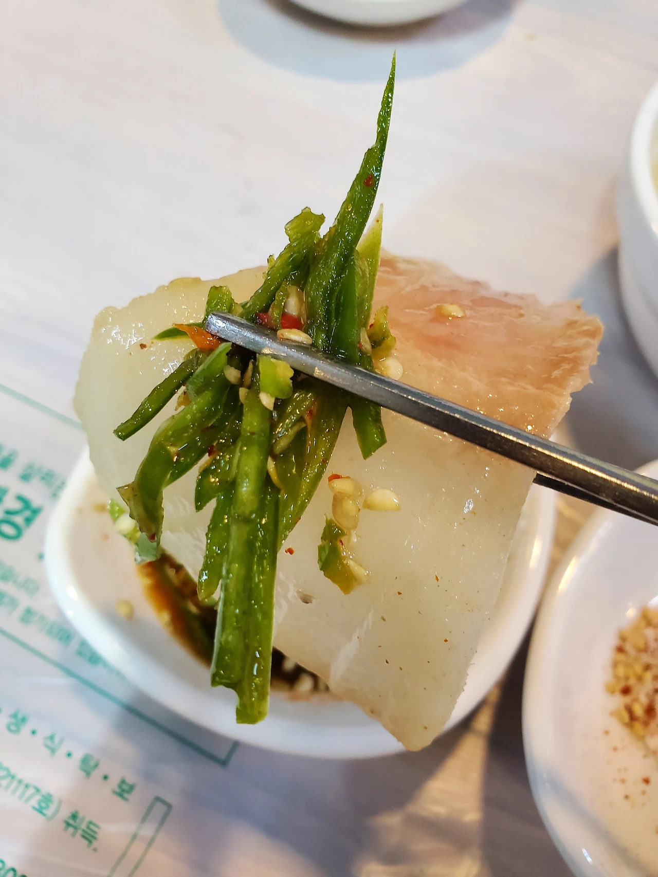 고래수육 대자를 주문했는데 여긴 독특하게 땡초(청양고추)를 곁들여 먹는다.