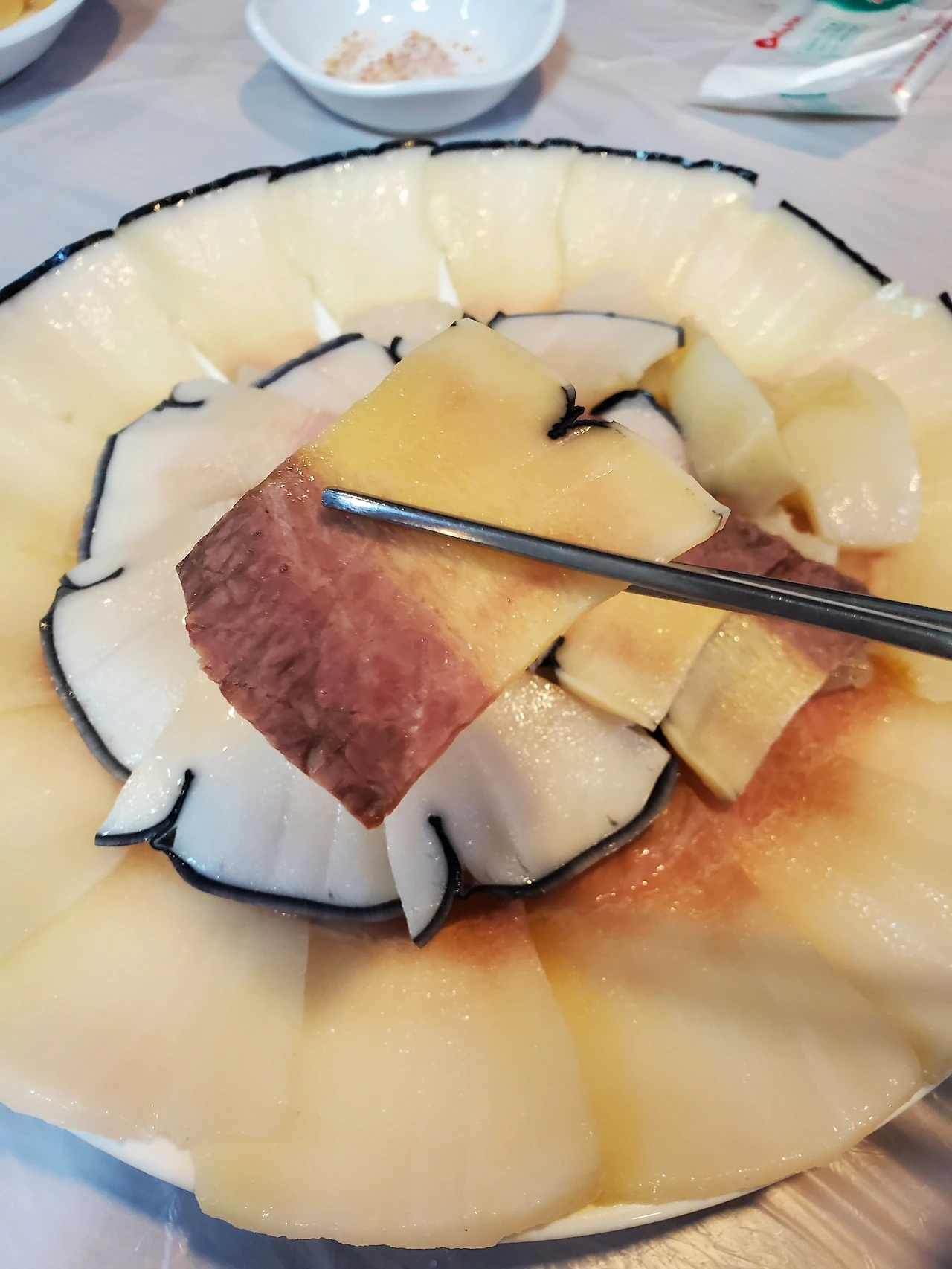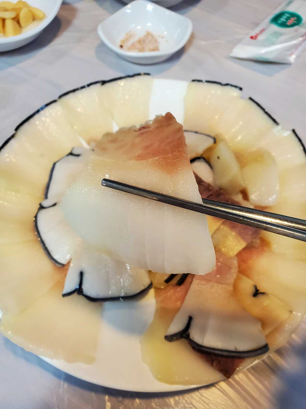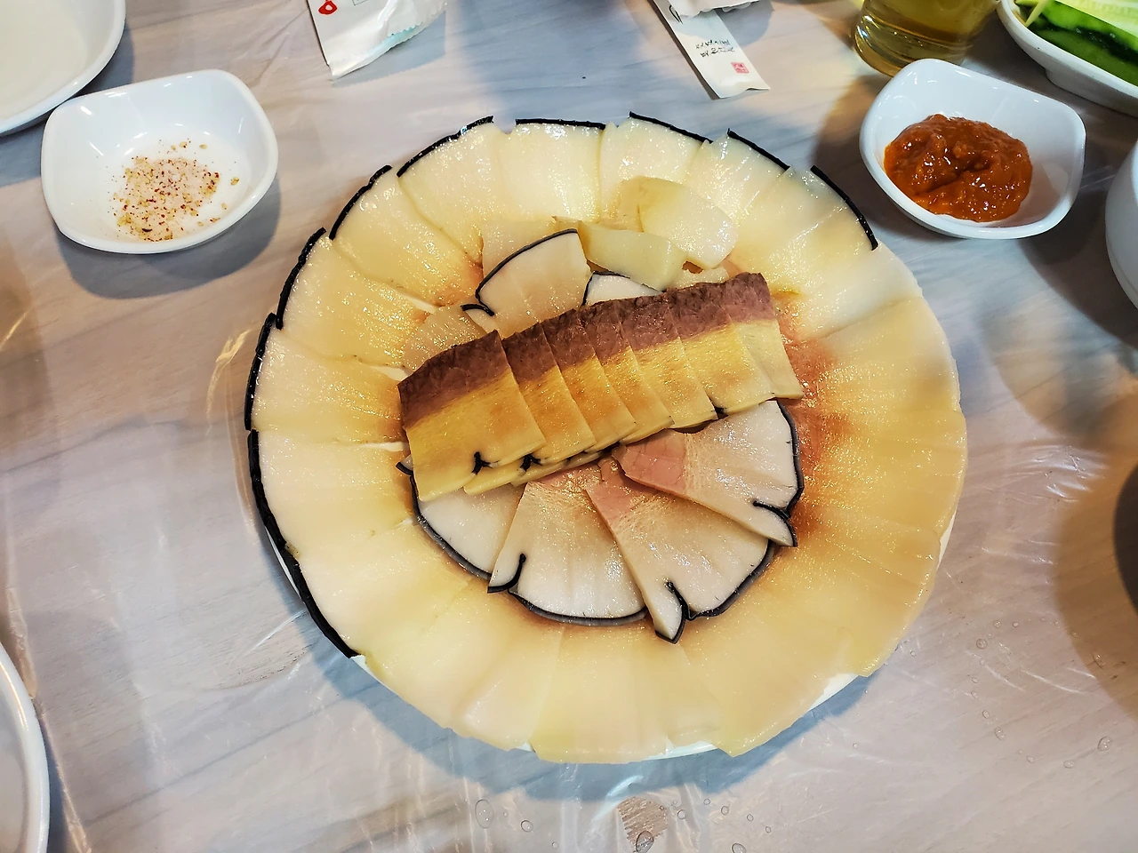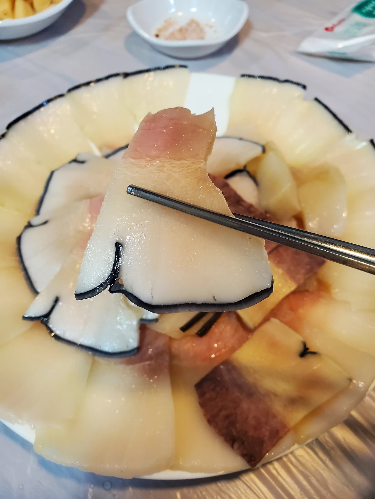 고래고기 모둠수육이라고 해야 할까? 부위별로 다른 식감이다.