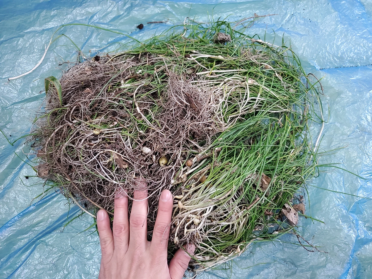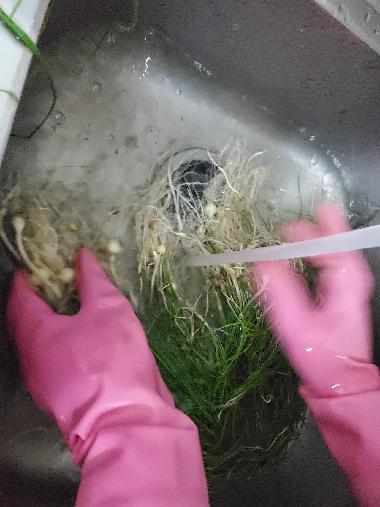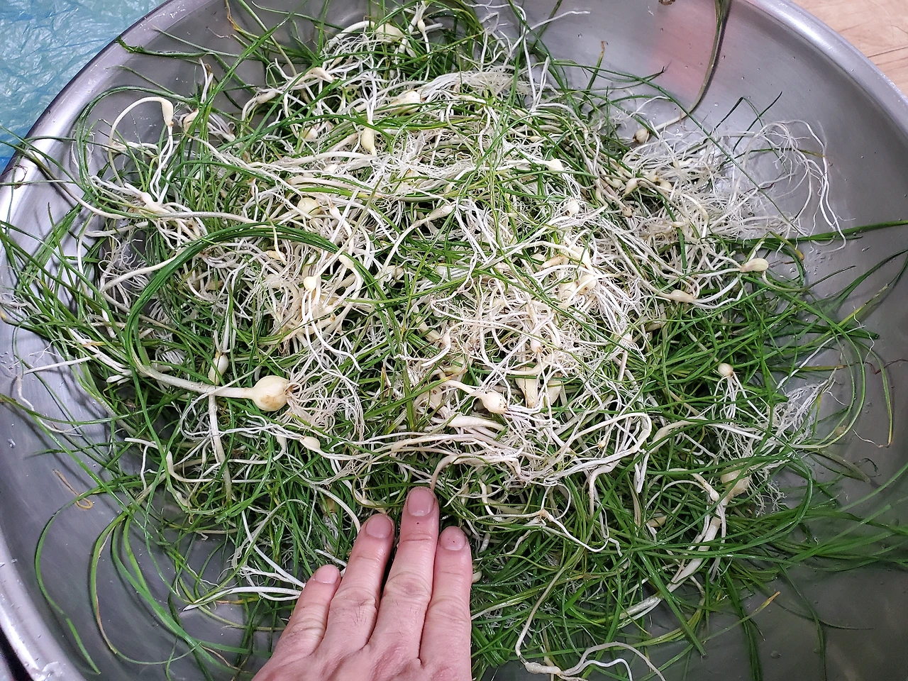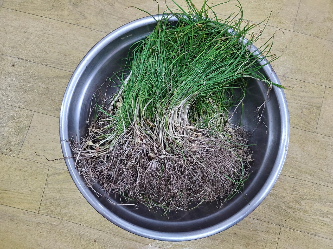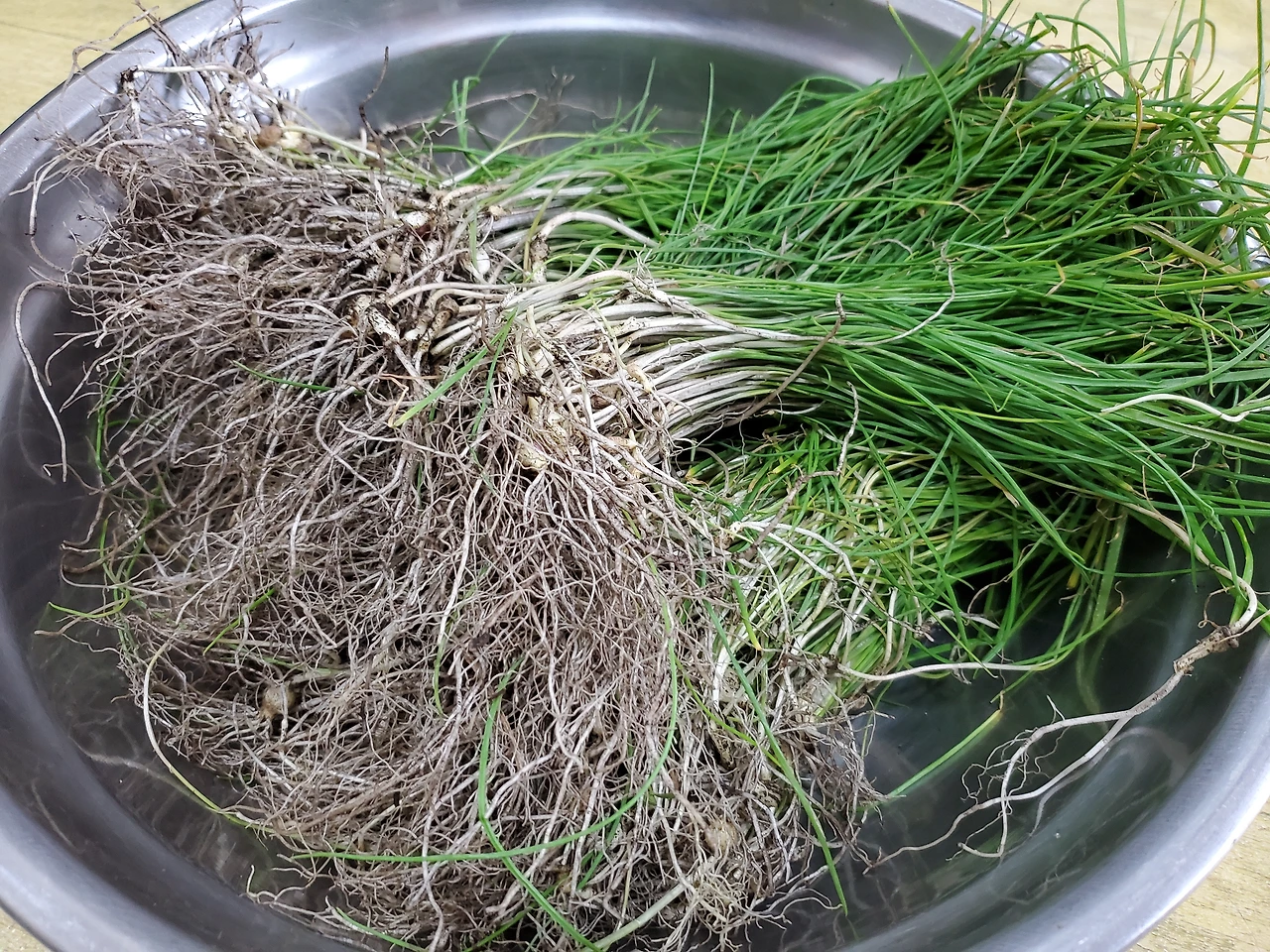 세척 전에 나뭇가지와 잡풀을 분리해야 하고 다년산 달래 뿌리의 해묵은 껍질도 벗겨내야 한다.