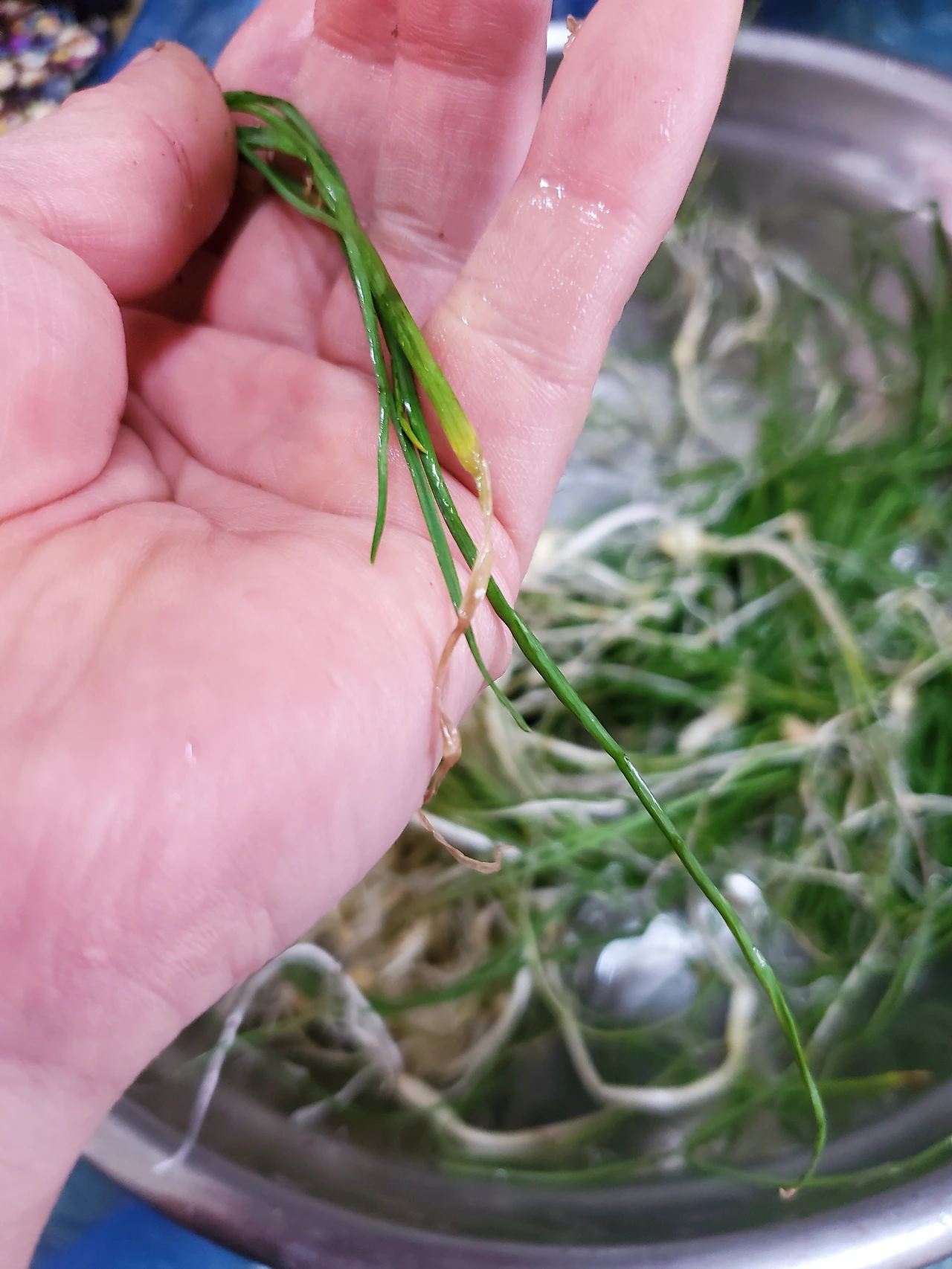 하우스에서 농사를 지어 키운 달래는 깨끗하고 손이 별로 안 간다는데, 들에서 마구 자란 자연산 달래는 손이 정말 많이 간다.