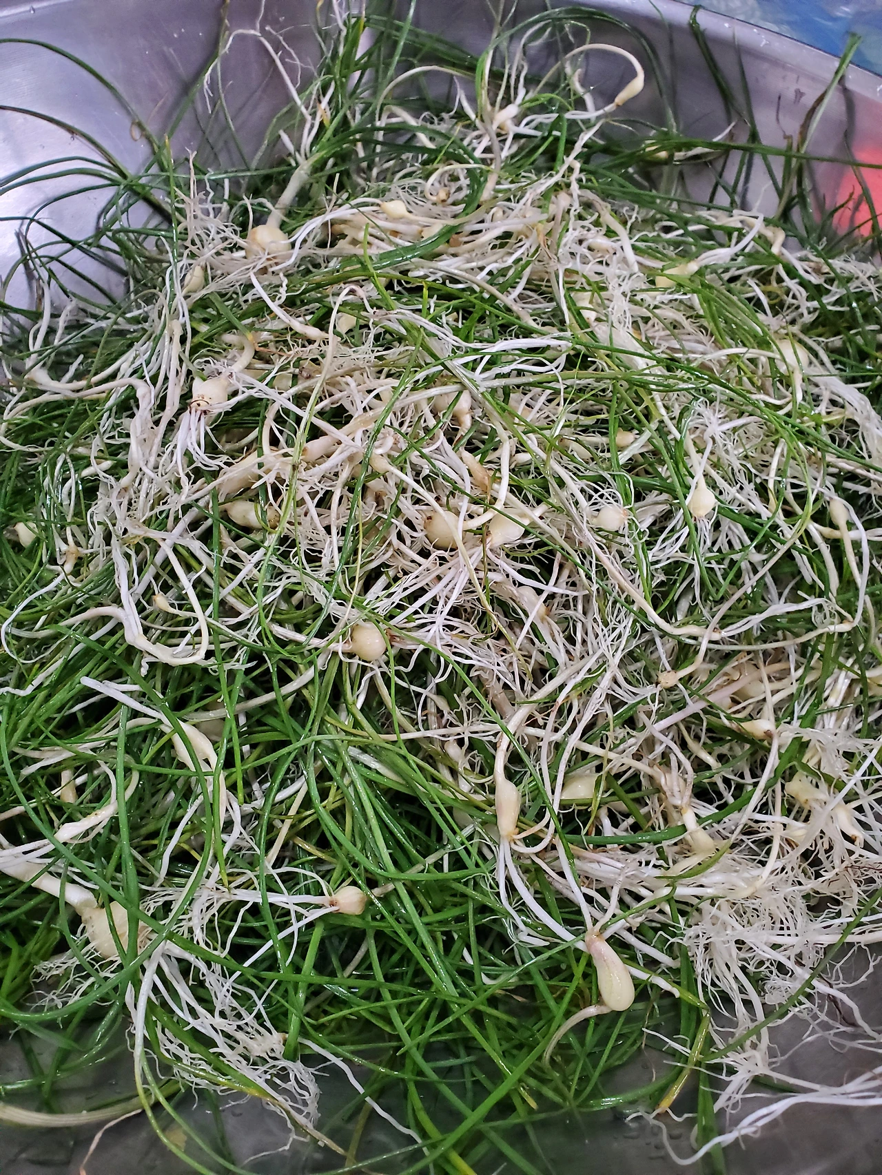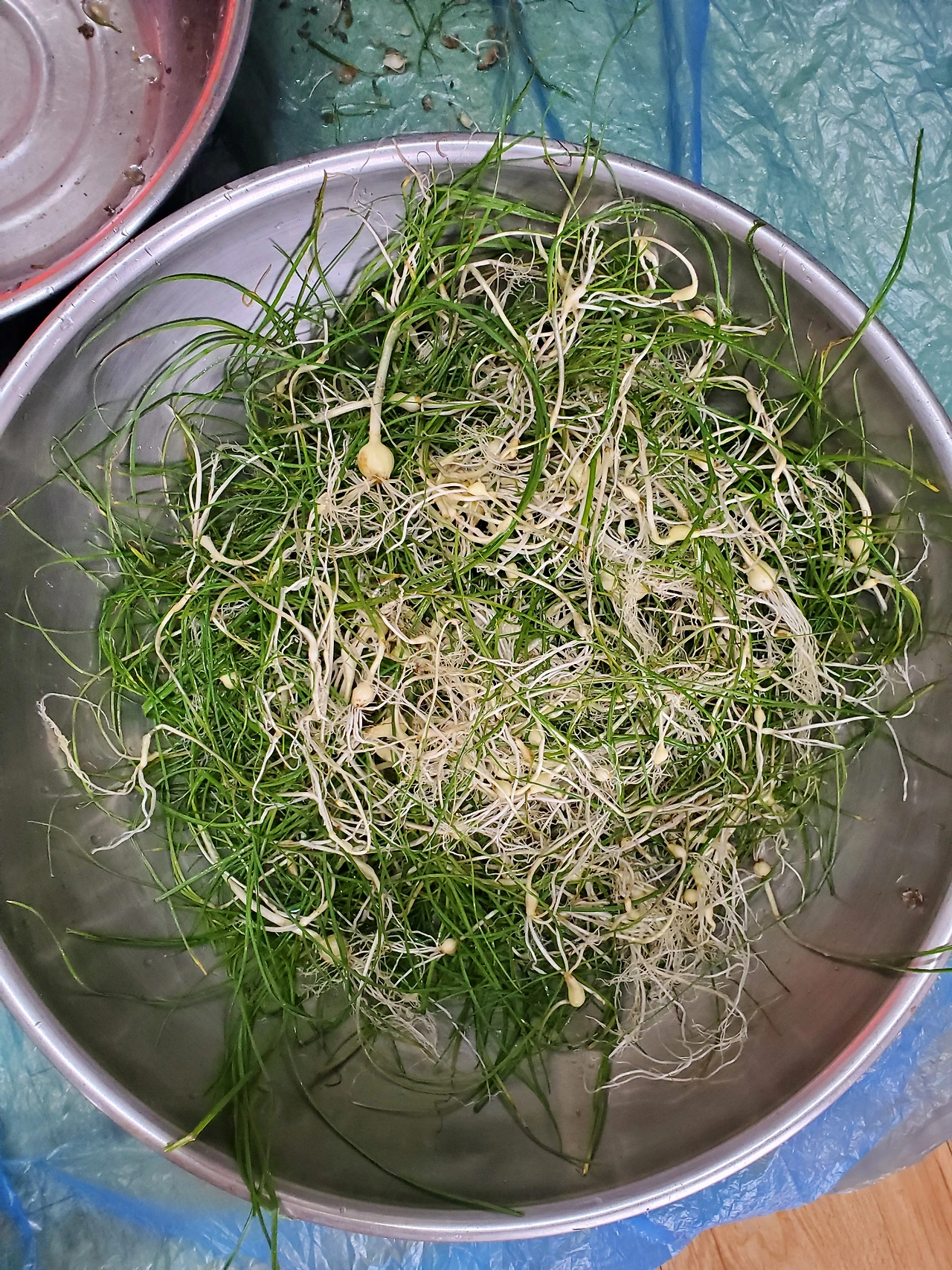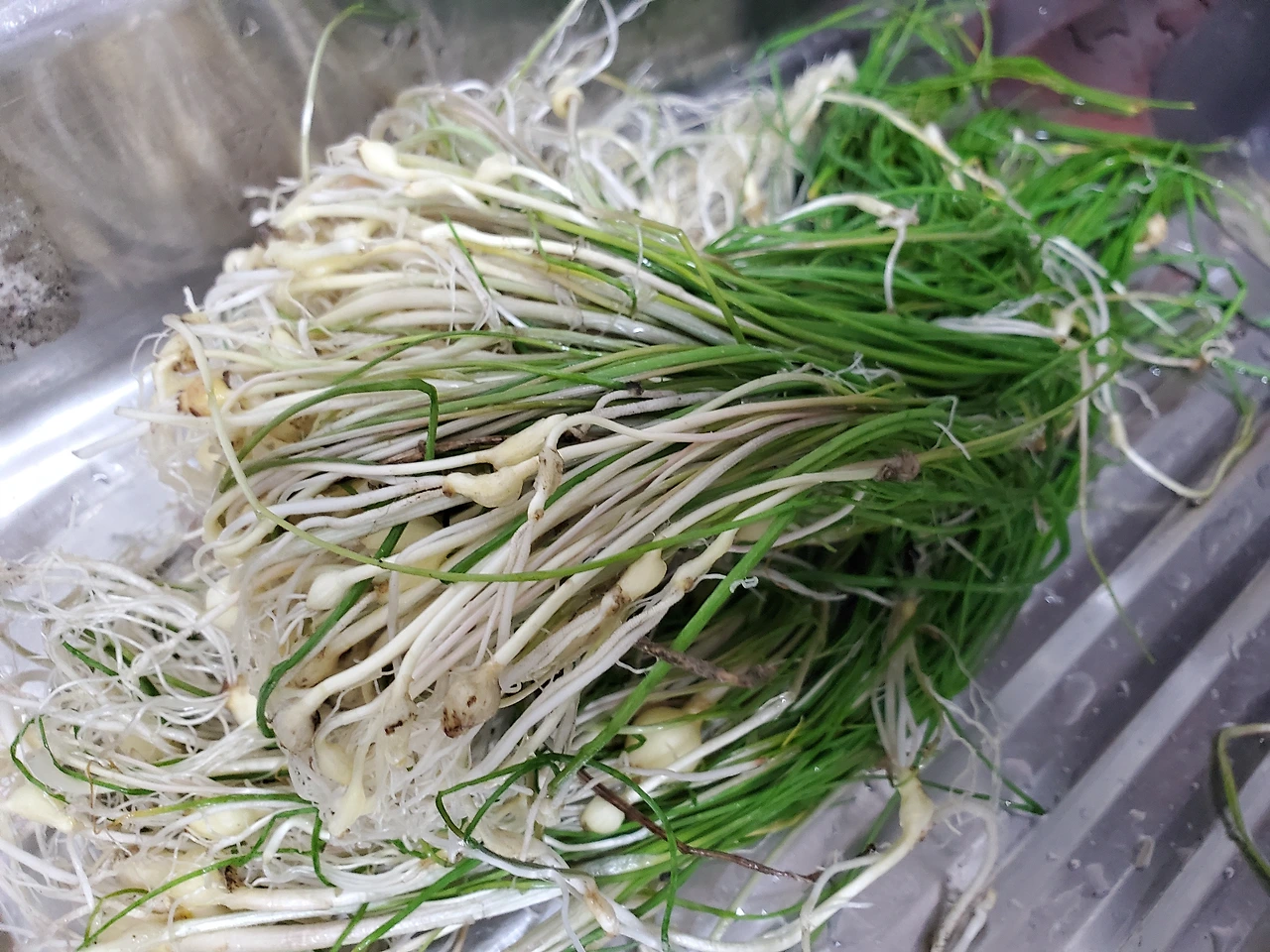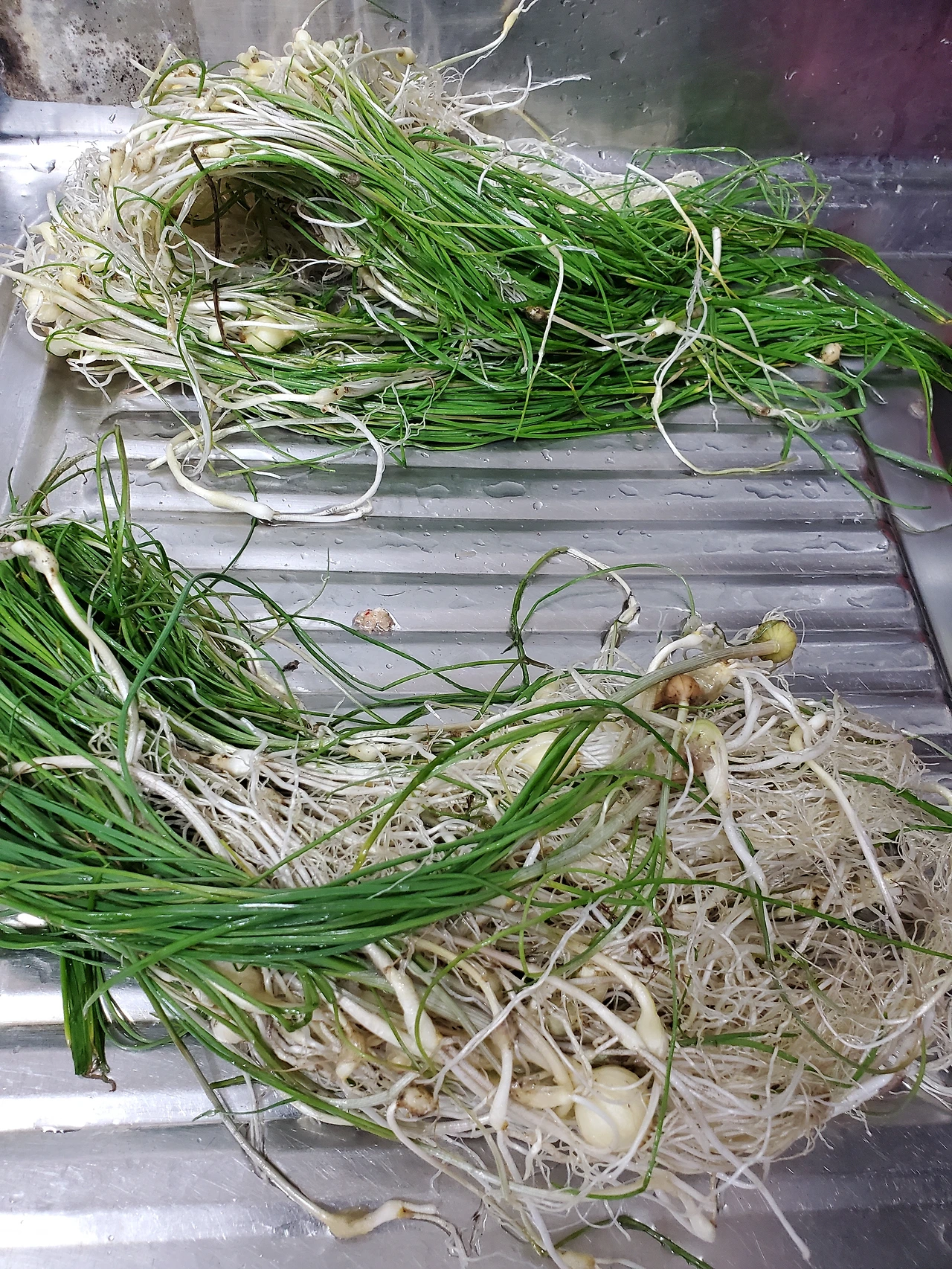 1차 세척을 마친 달래는 뿌리와 줄기를 한 번 더 다듬는다.