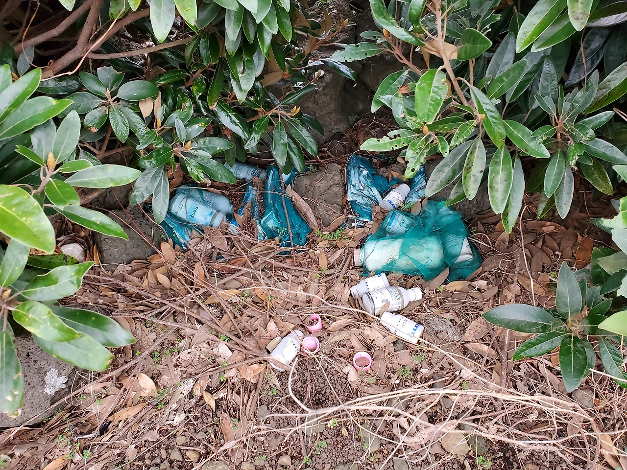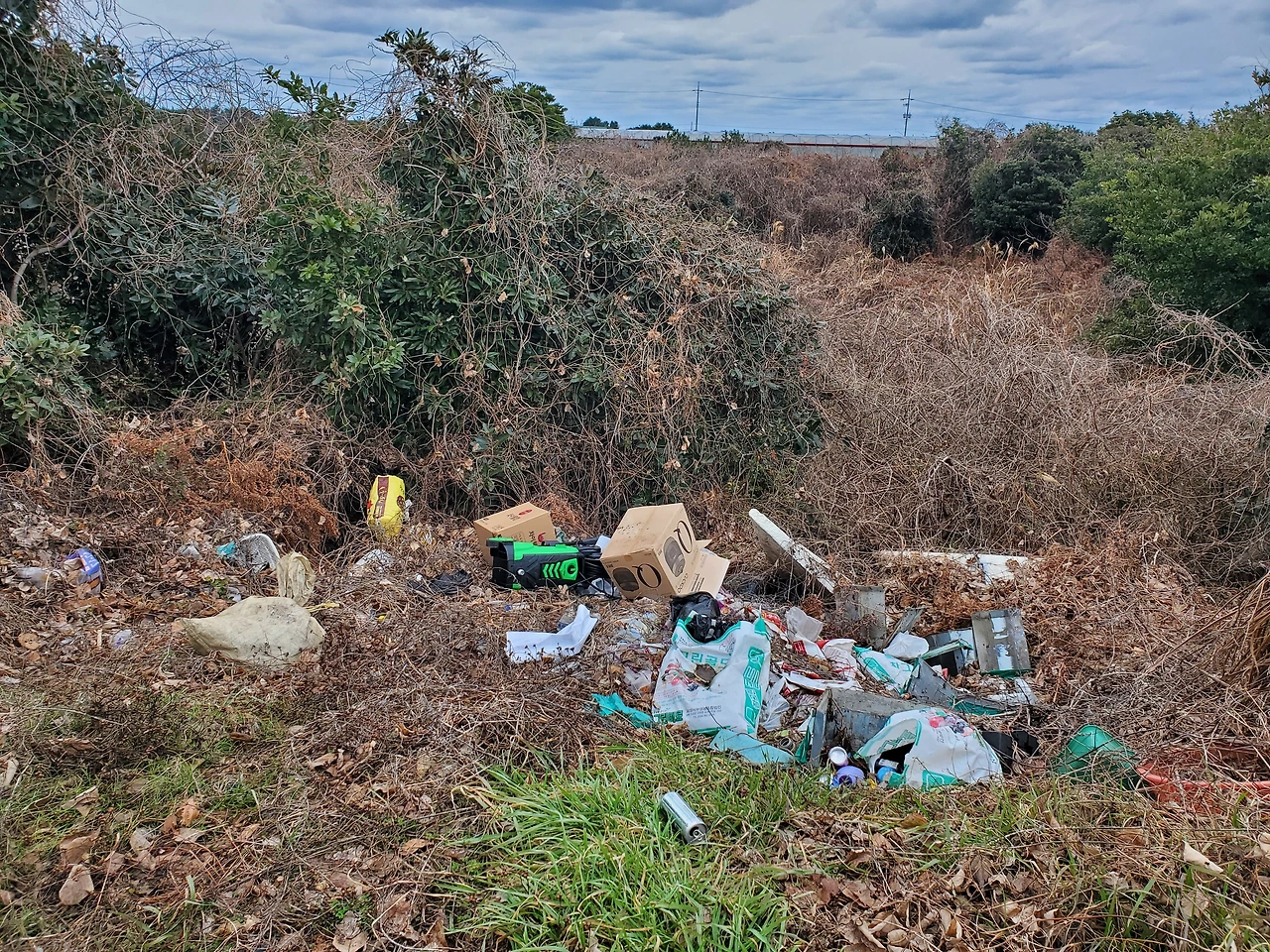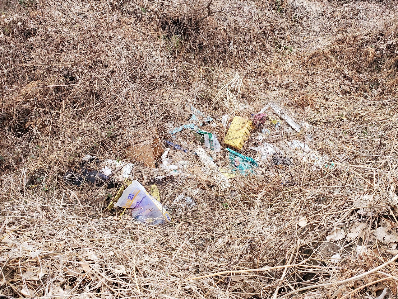 몇 년이 지났는지 알 수 없을 정도로 수풀에 가려진 쓰레기 더미도 많다.