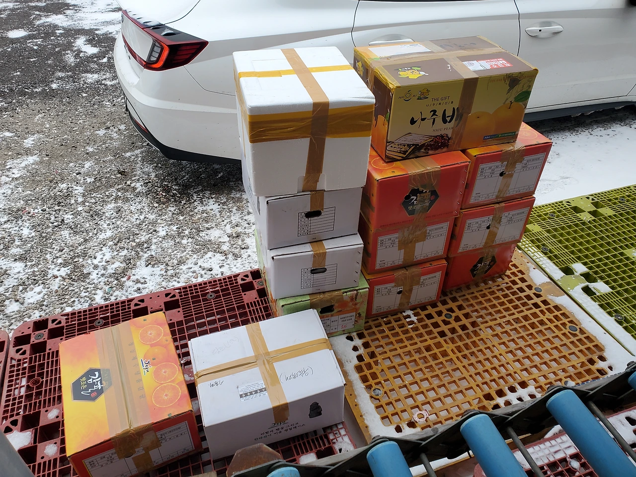 다음날 아침 무, 당근, 감자, 엄마표 반찬 등 택배 13개를 보내고 제주공항으로 나섰다.