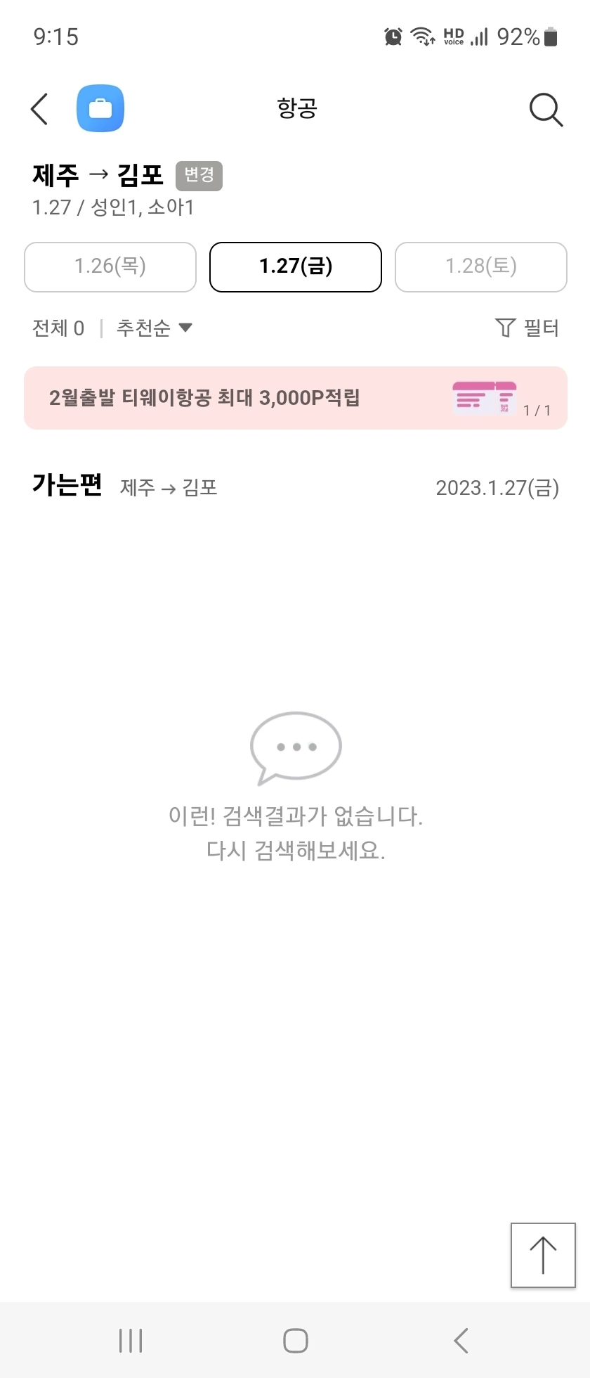 다행히 25일 오후 12시 55분 비행기로 예약을 하고 다시 성산으로 돌아가는 길.