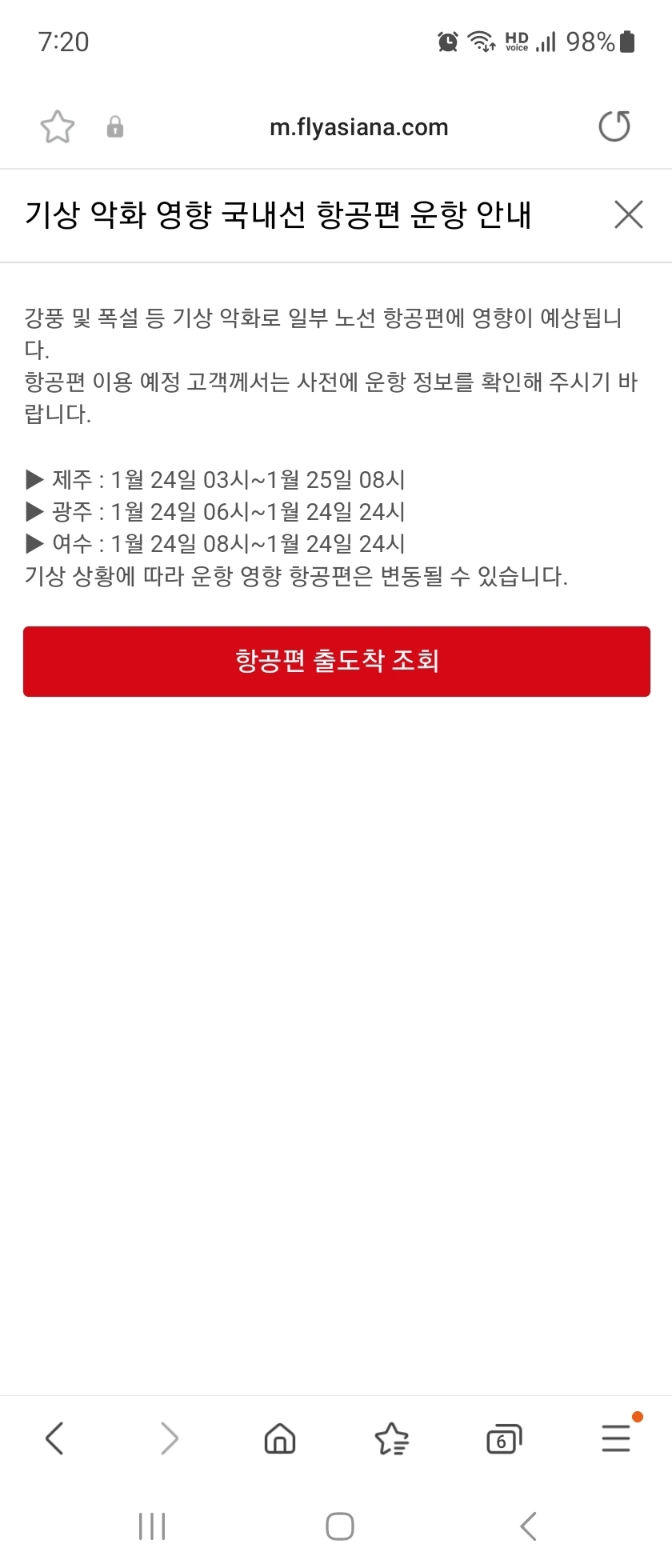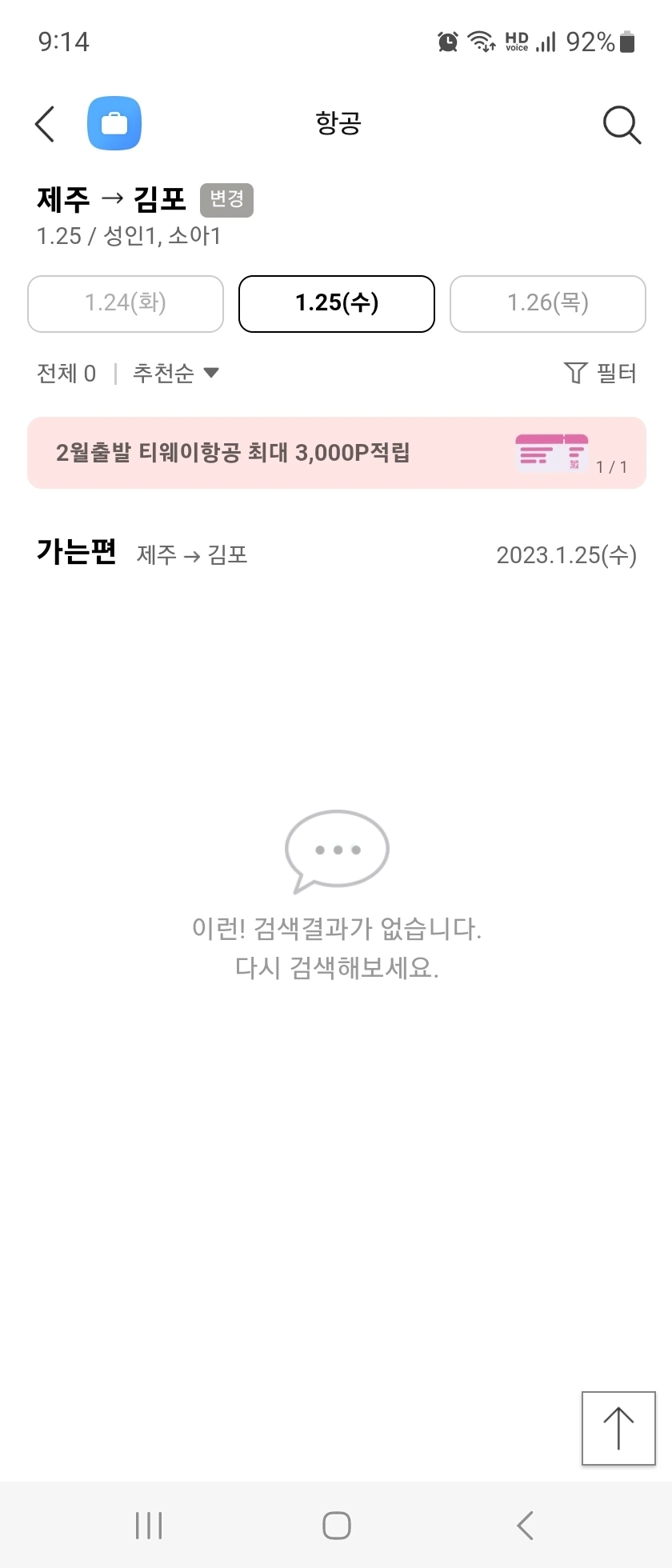 예정되었던 24일 비행기가 전면 운항 취소된 거다.