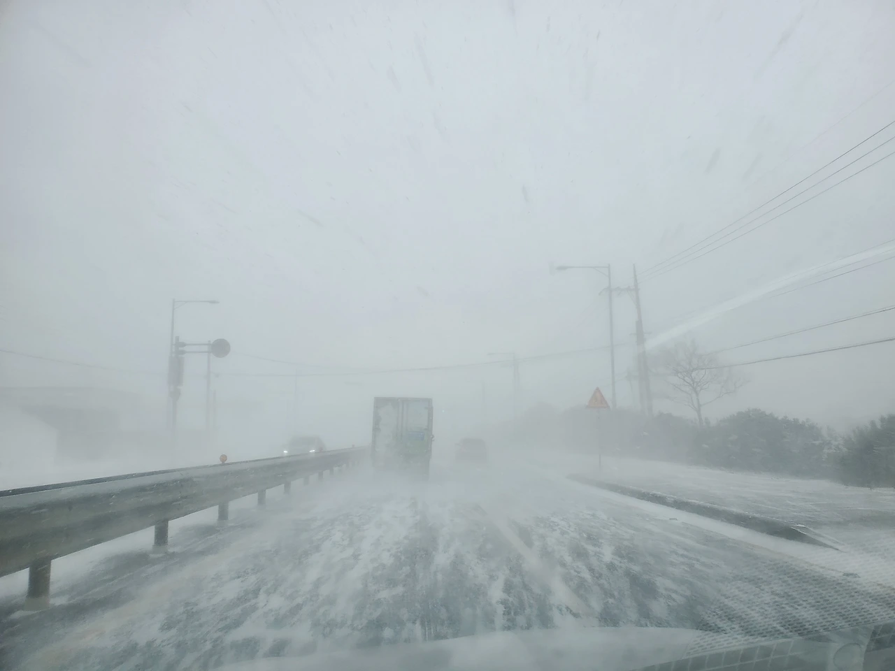 폭풍이라더니 눈이 너무 많이 날려 앞이 보이지 않는 구간도 더러 있었다.