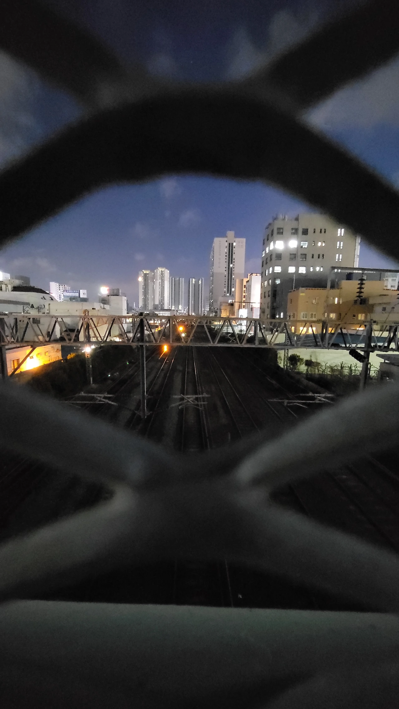 육교를 건너며 서울과 부산을 잇는 경부선 철도를 철망 사이로 감상했다.