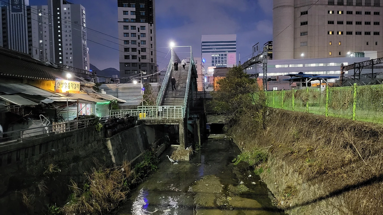 얼마나 오래된 곳인지 알 수는 없지만 오랜 세월 엄청난 양의 물이 흘러갔을 하천이 부산시의 과거와 현재를 오묘하게 섞어내고 있었다.