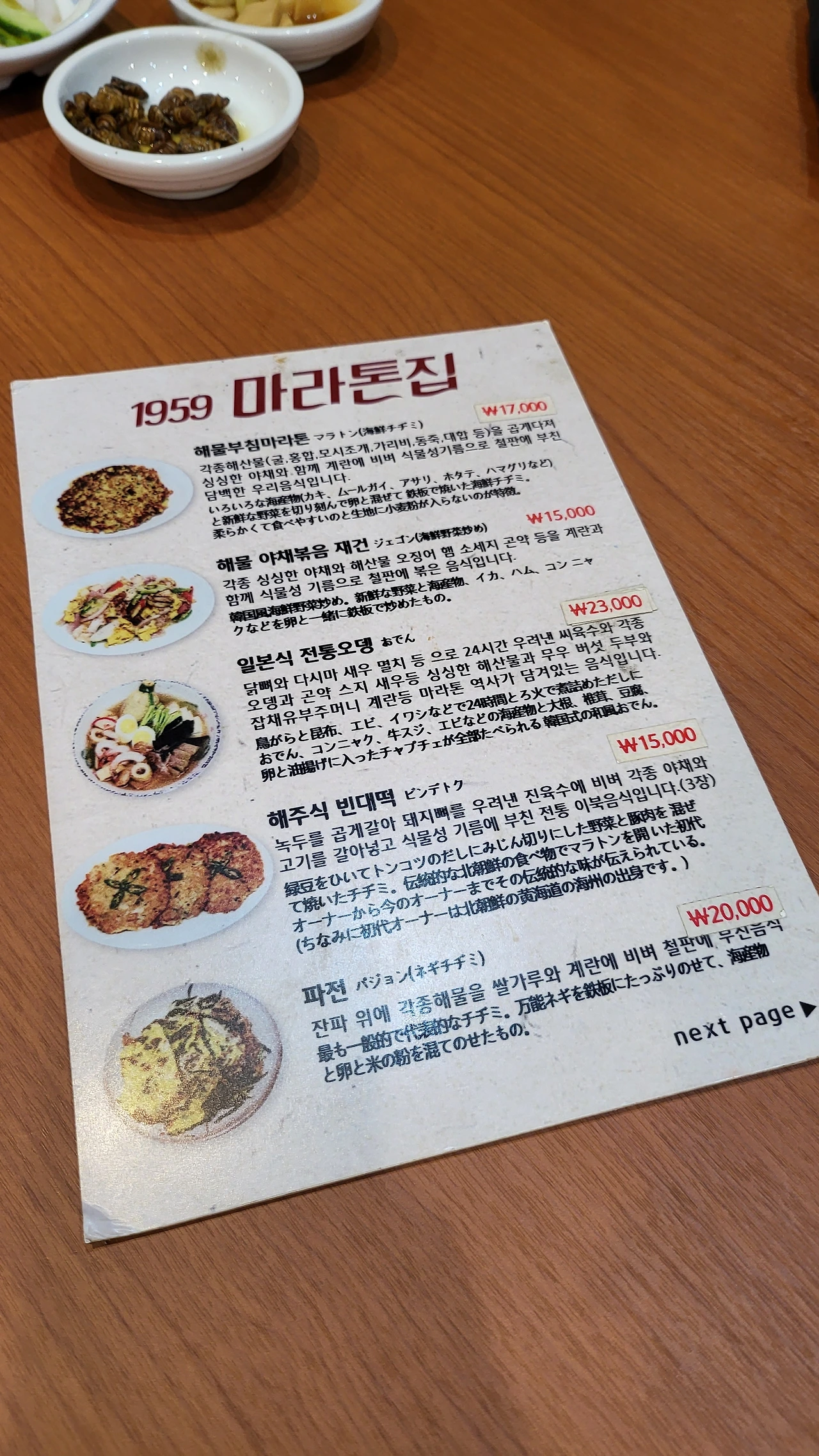 식당엔 '마라톤'이라는 간판이 붙었고 식당의 주메뉴였던 해물파전에도 '마라톤'이라는 메뉴명이 붙었다.