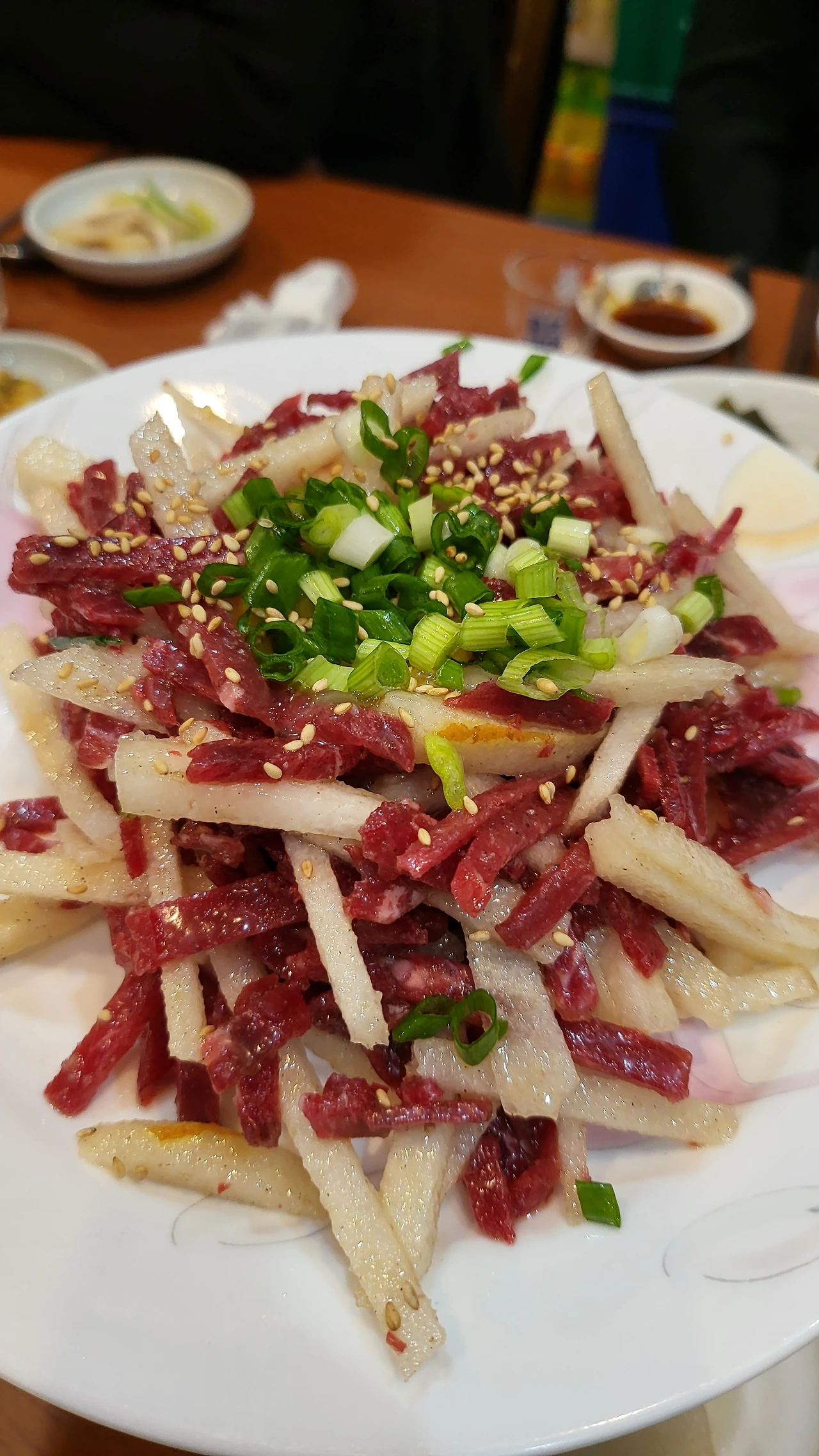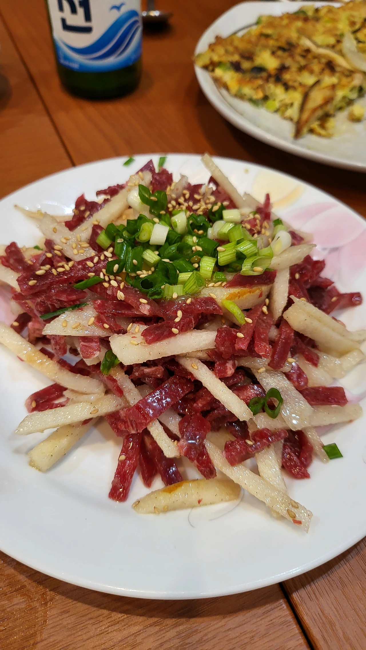그래서 해물파전보다 조금 저렴했던 해물야채무침엔 '재건'이라는 메뉴명이 붙었다고 한다.