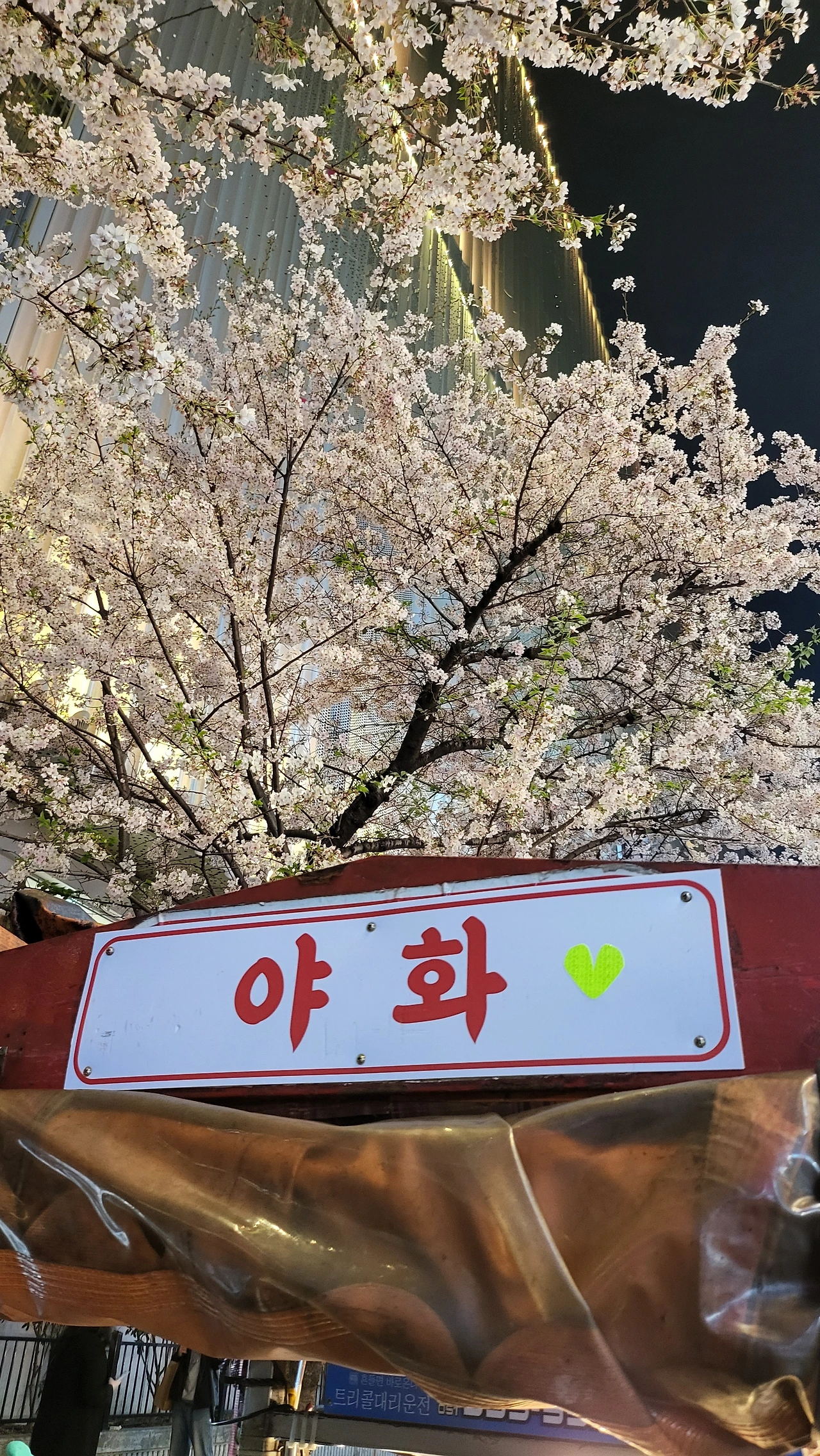 마침 '야화'라는 간판을 건 포장마차 위로 예쁜 벚꽃이 만발해 정말 잘 어울려 보였다.