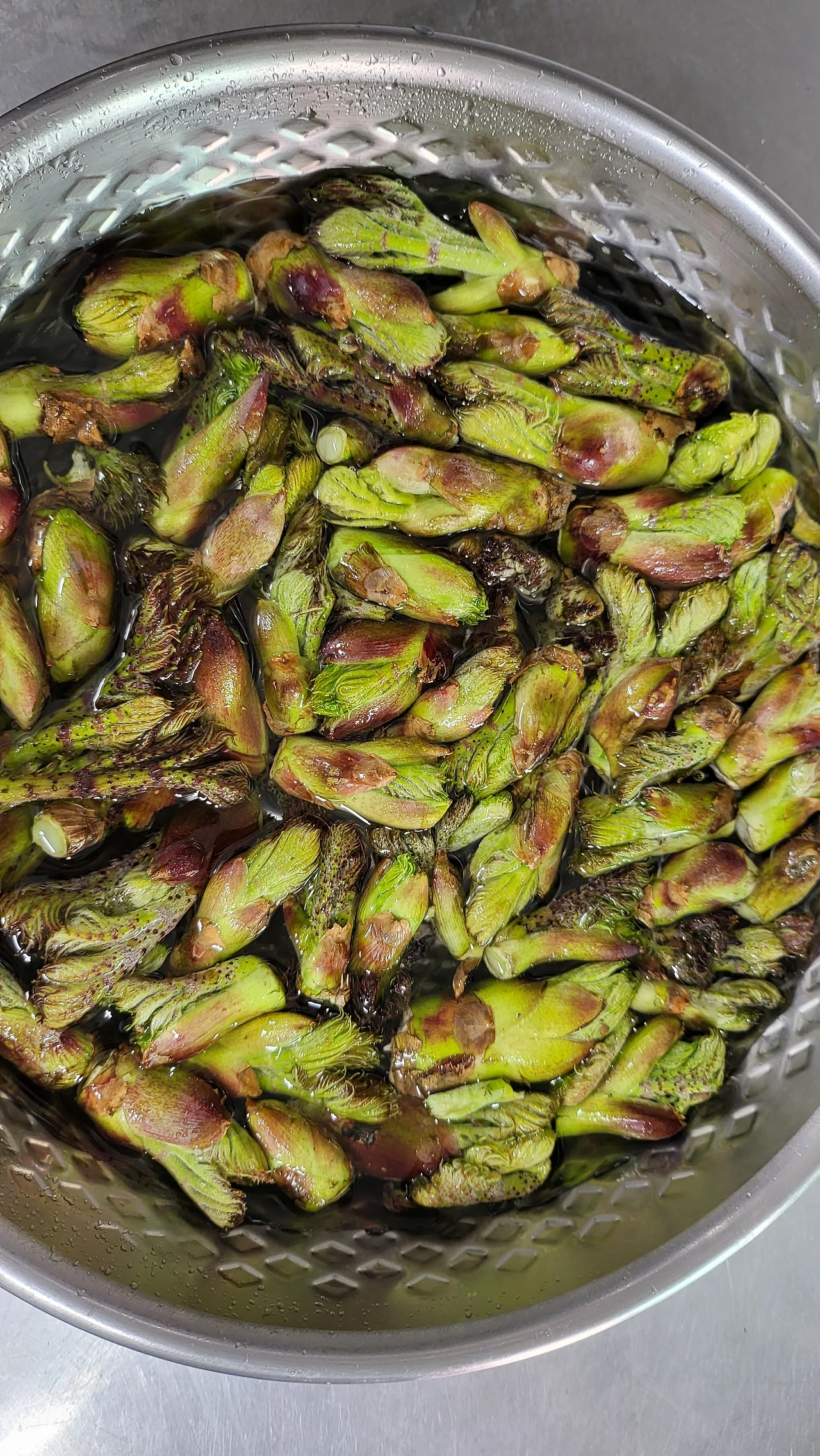 그렇게 한 시간 정도 따온 두릅을 물에 씻어 데쳤다.