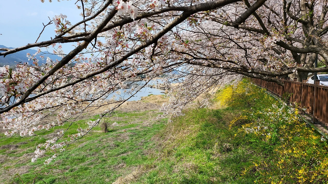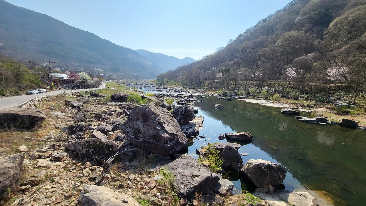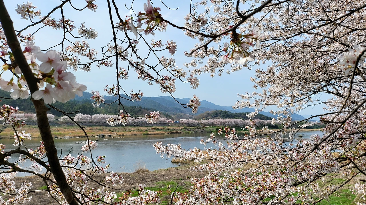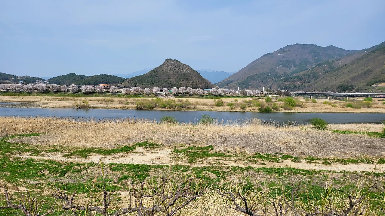 구례군청 근처를 지나면서 제대로 된 벚꽃길과 멋진 풍경이 시작됐다.