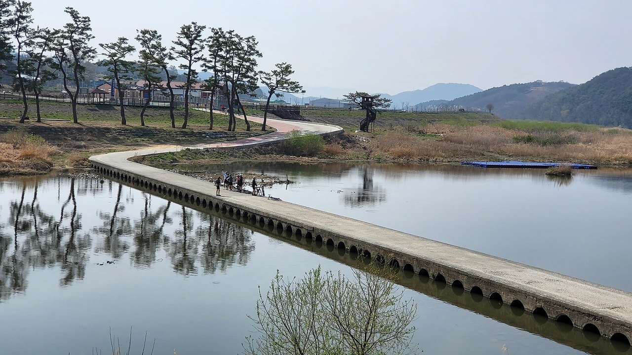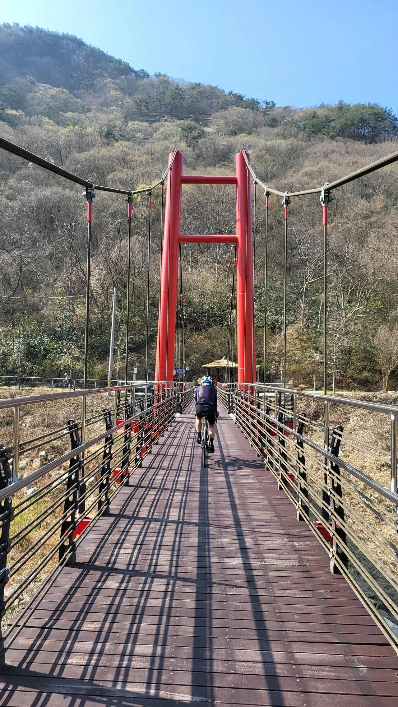 라이딩을 하며 보니 앞에 보이는 콧구멍다리가 꽤 괜찮은 포토존이 될 것 같아서 일행들이 다리 위를 지나가는 영상을 찍기 위해 기다렸다.