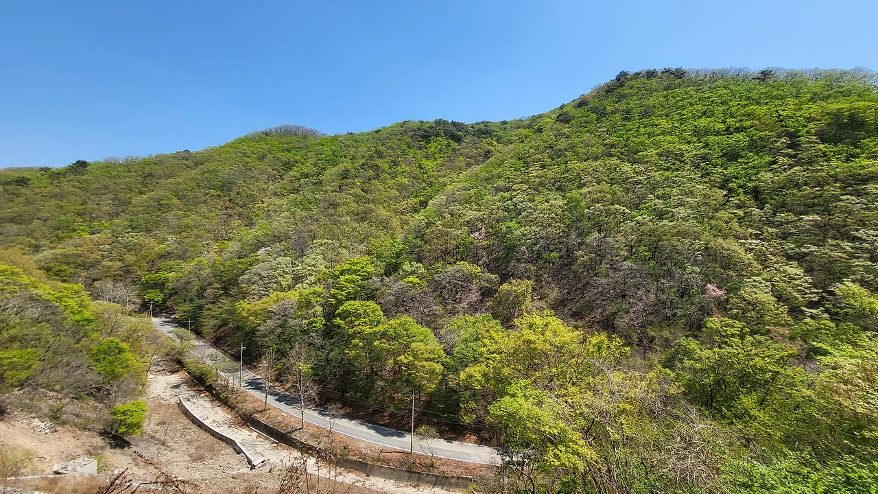 은근히 올라온 모양이지 싶었는데 해발 400m 정도 되는 곳이다.