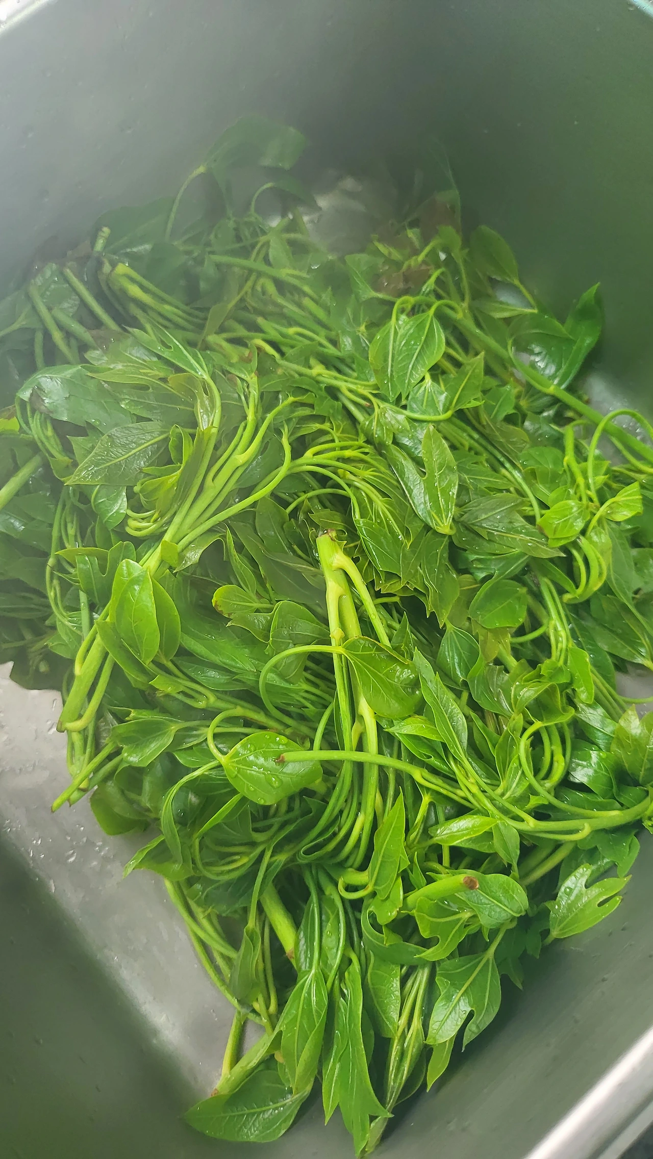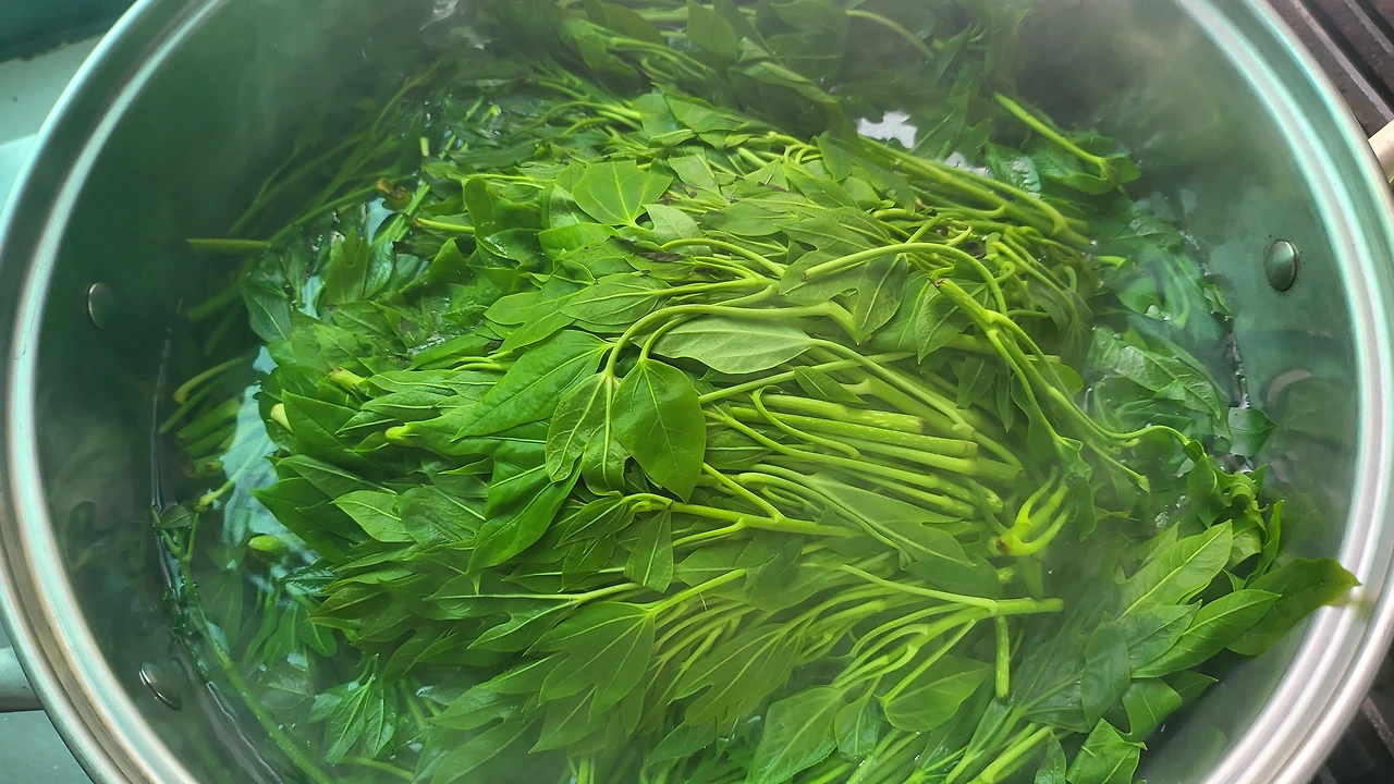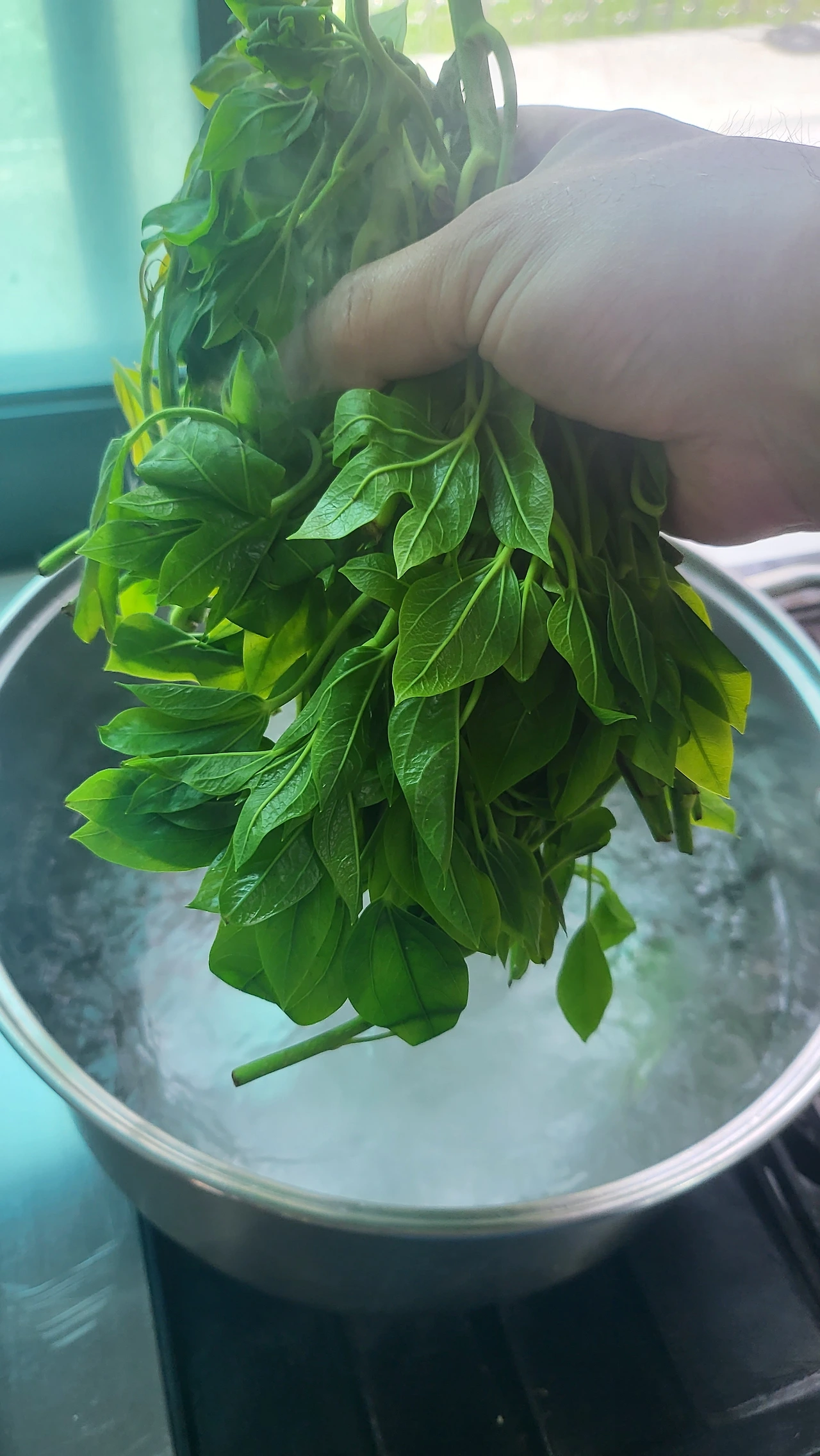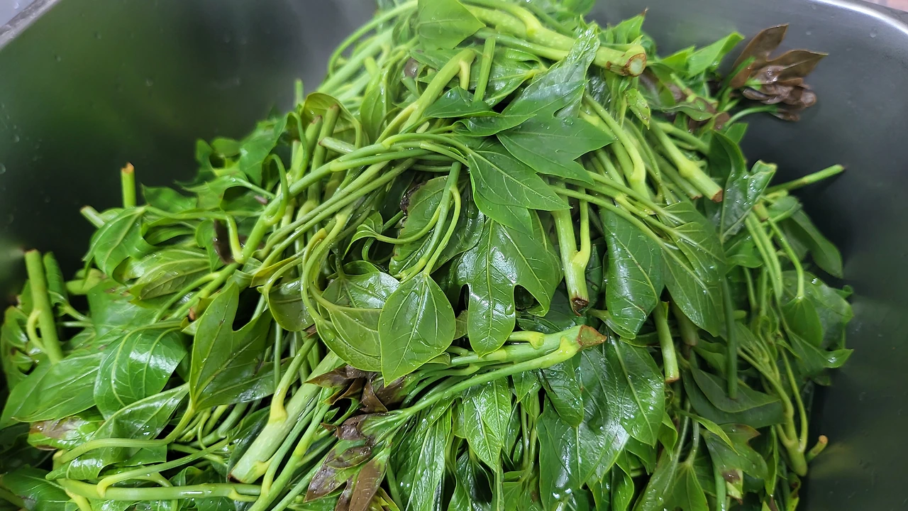 상자 가득히 담겼던 황칠나무 순을 끓는 물에 몽땅 투하시켰다.