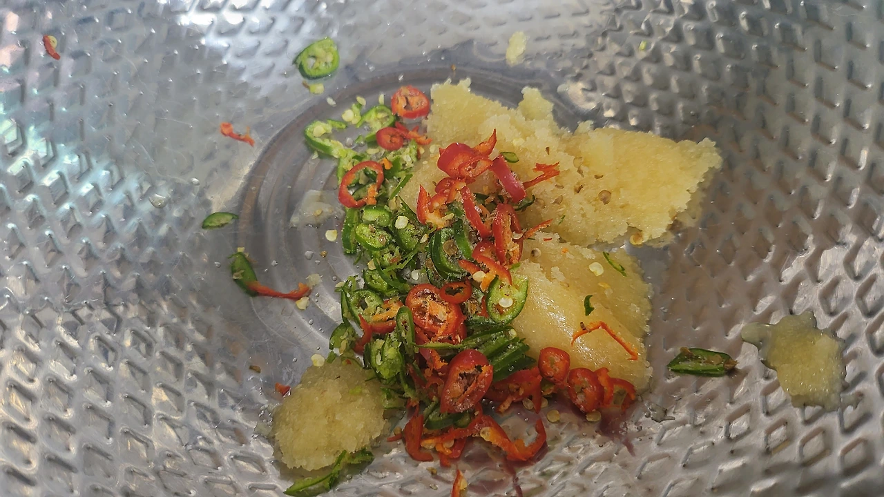 다진 마늘과 옛날된장, 후추 조금, 청양고추, 간장 찔끔 넣고 들기름 두르고 거기다 최종병기인 제주도 집에서 공수한 동백기름을 담뿍 넣었다.