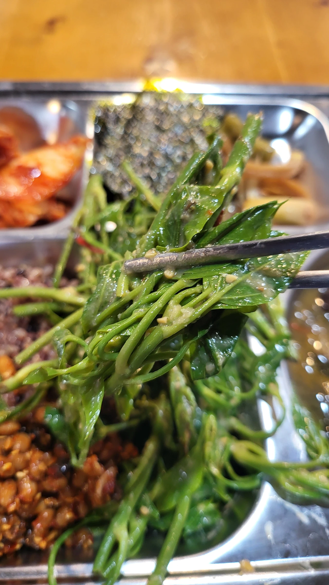 황칠나무순에 눈이 멀어 사진은 촬영하지 않았지만 제주도 집에서 농약 한 번 주지 않고 키운 콩으로 만든 낫또에 청양고춧가루, 들기름, 동백기름, 참깨, 간장을 넣고 버무린 게 있다.