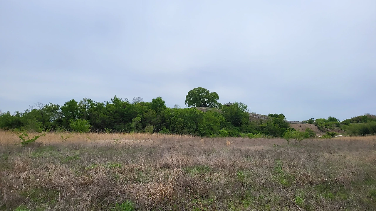 자전거길을 달리다 보면 이렇게 황량한 곳에 자그마한 언덕이 보이고 그 위엔 팽나무 한 그루가 덩그러니 자리 잡고 있다.