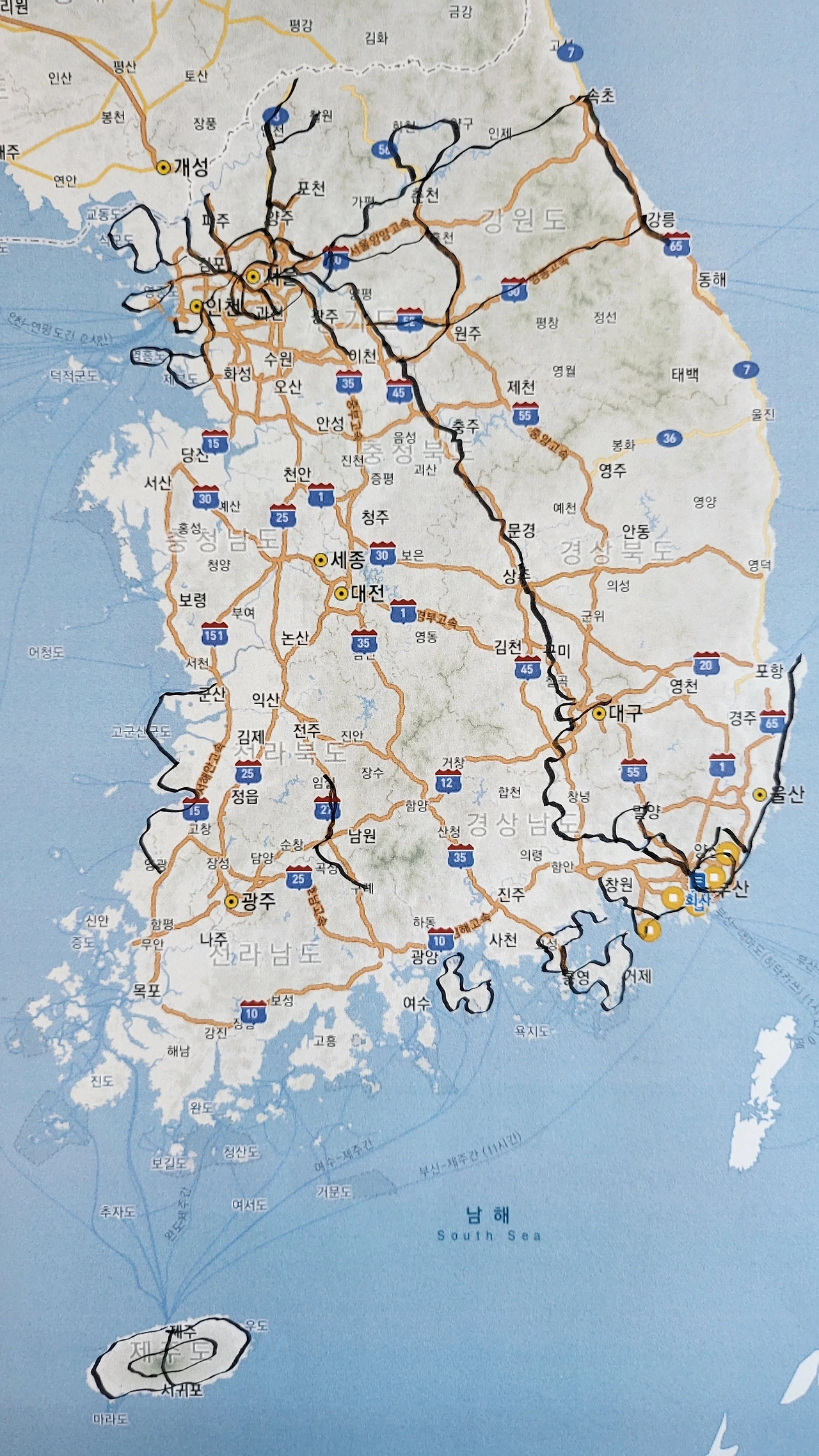 일단 동해안 해안선은 모두 돌아봐야 할 것 같은데 이렇게 선을 긋고 보니 욕심 아닌 욕심이 생기고 말았다.