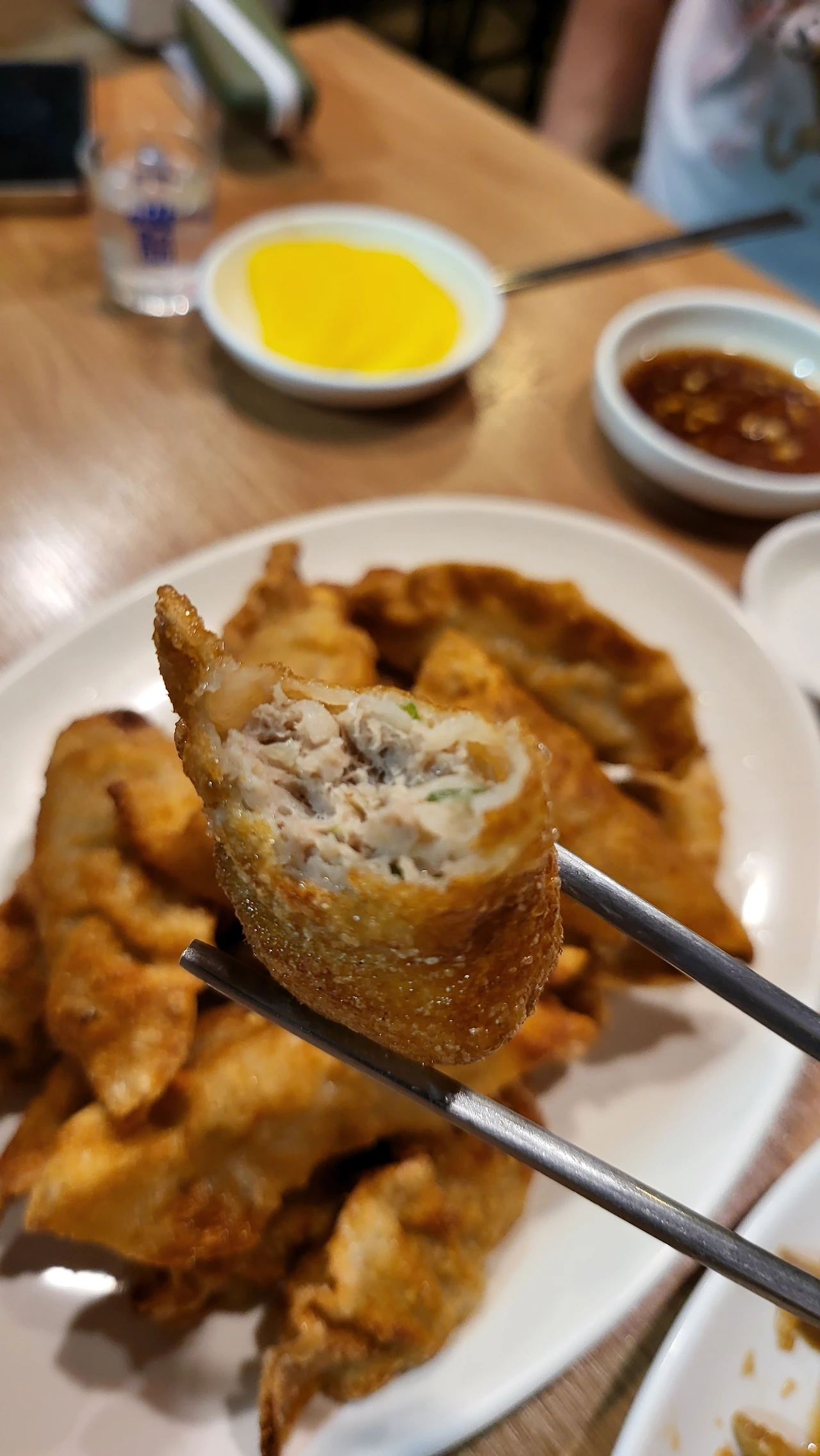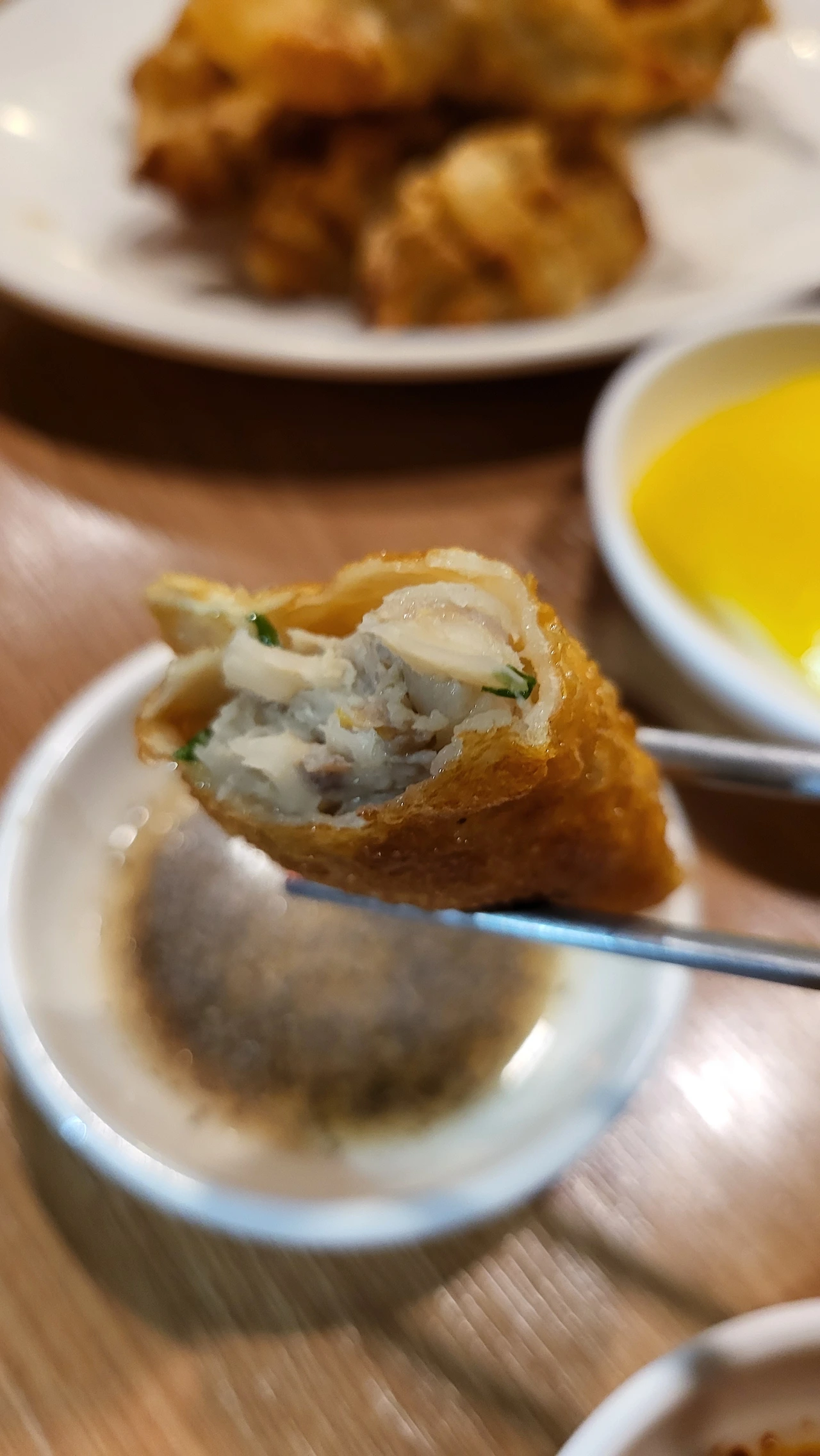 드디어 튀김만두가 나왔는데 겉바속촉이라는 표현을 제대로 성립시키는 요리가 아닌가 싶었다.