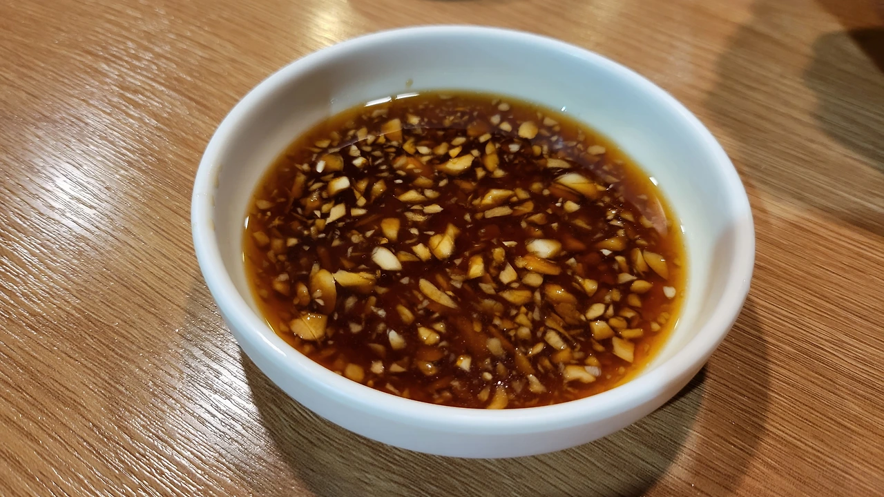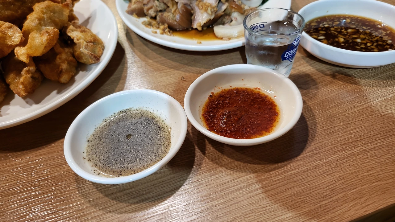 식초에 후추를 잔뜩 섞어 군만두용 소스를 만든 거다.