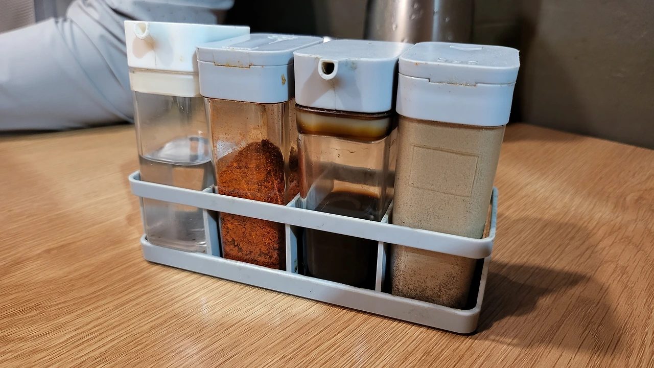 기본으로 차려진 간장소스와 4가지 양념이다.
