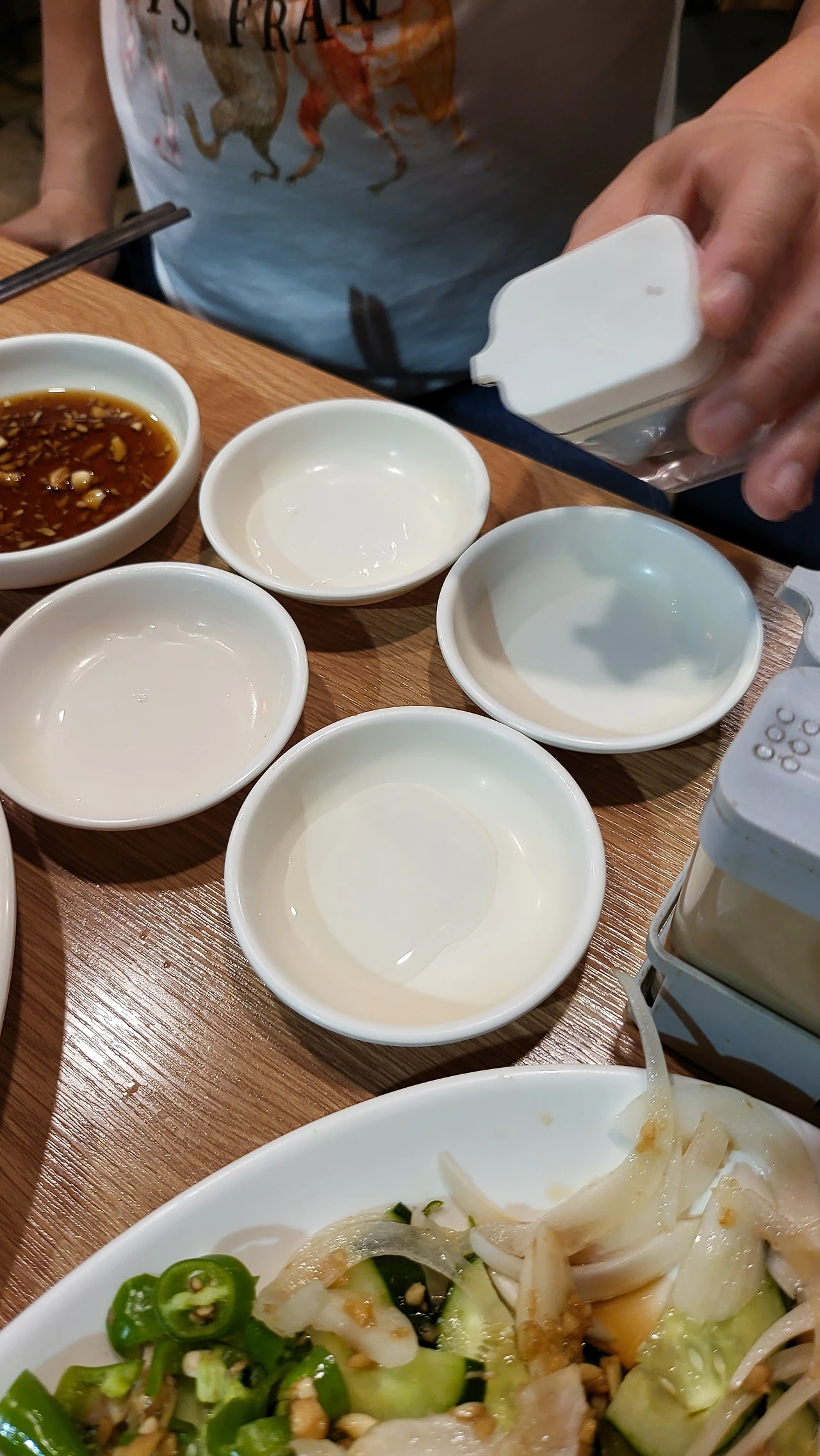 뒤에 있는 다른 테이블의 그릇을 보니 엄청난 크기던데 소와 대가 엄청난 차이를 보인다.