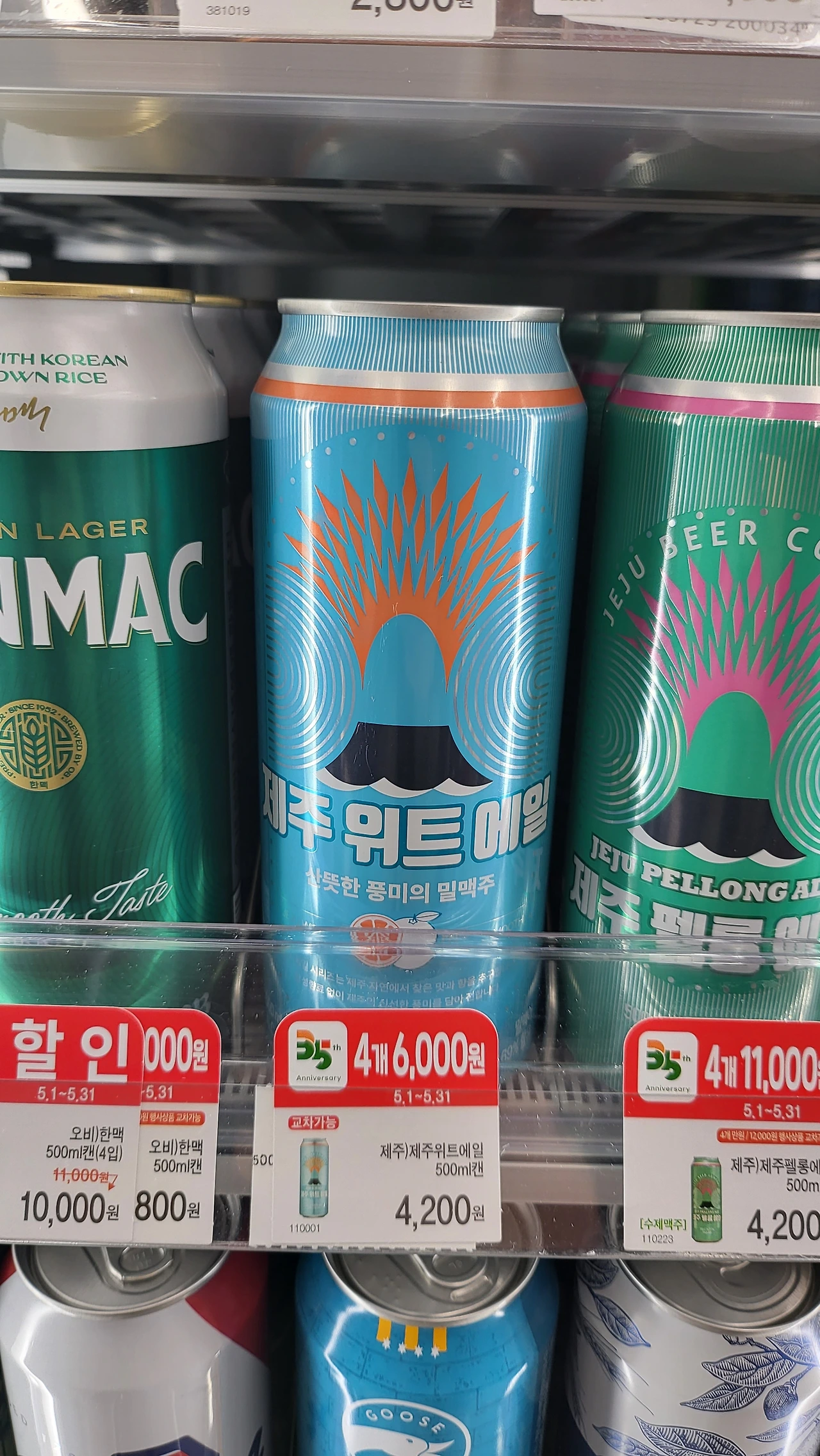 집에 돌아와 소주 생각이 나서 편의점에 갔더니 제주맥주 중 초기버전인 제주위트에일 네 캔에 6,000원이란다.