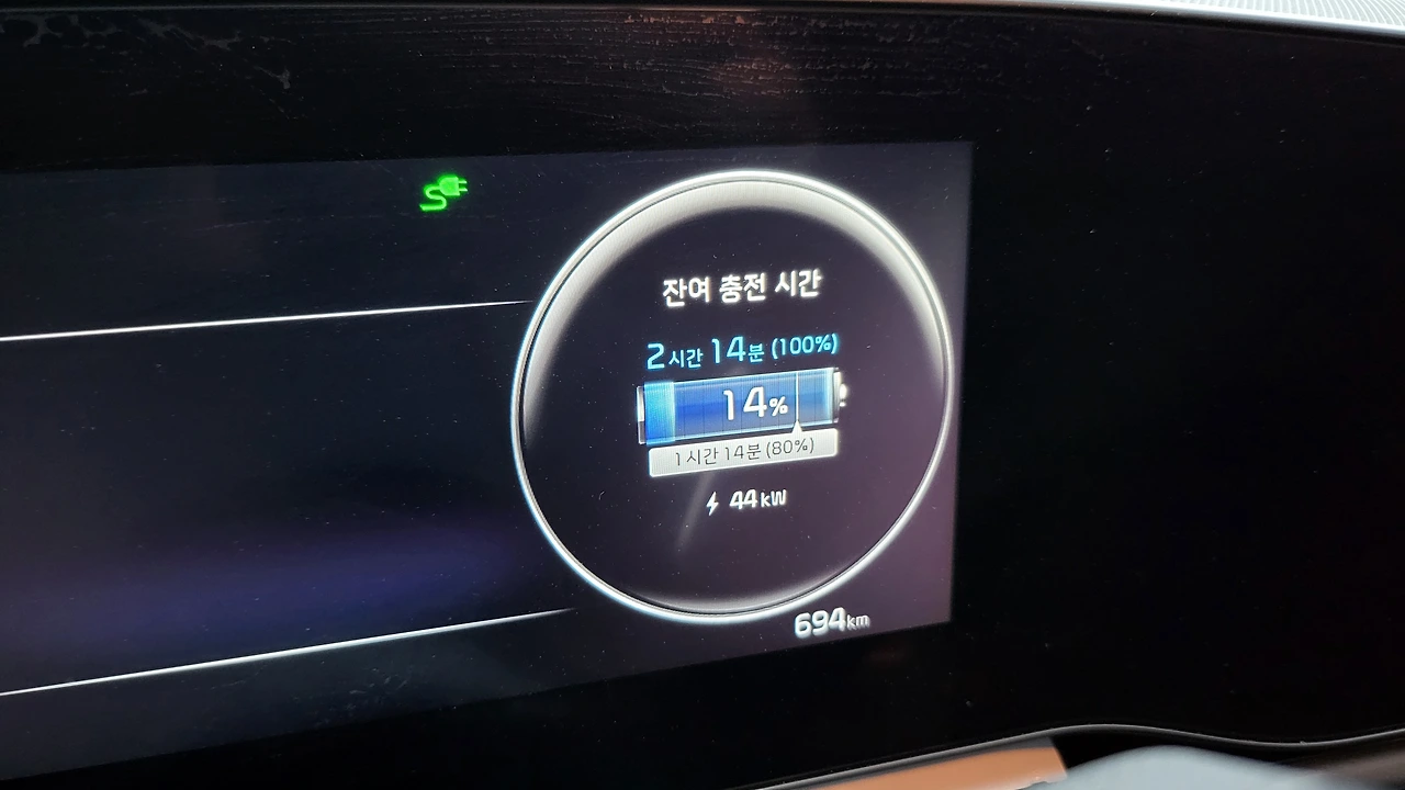 배터리가 80% 충전된 전기차를 빌려 제주공항에서 성산, 성산에서 서귀포시, 서귀포시에서 고산, 고산에서 성산, 동네 몇 바퀴 정도 돌았더니 잔여 용량이 14%가 됐다.