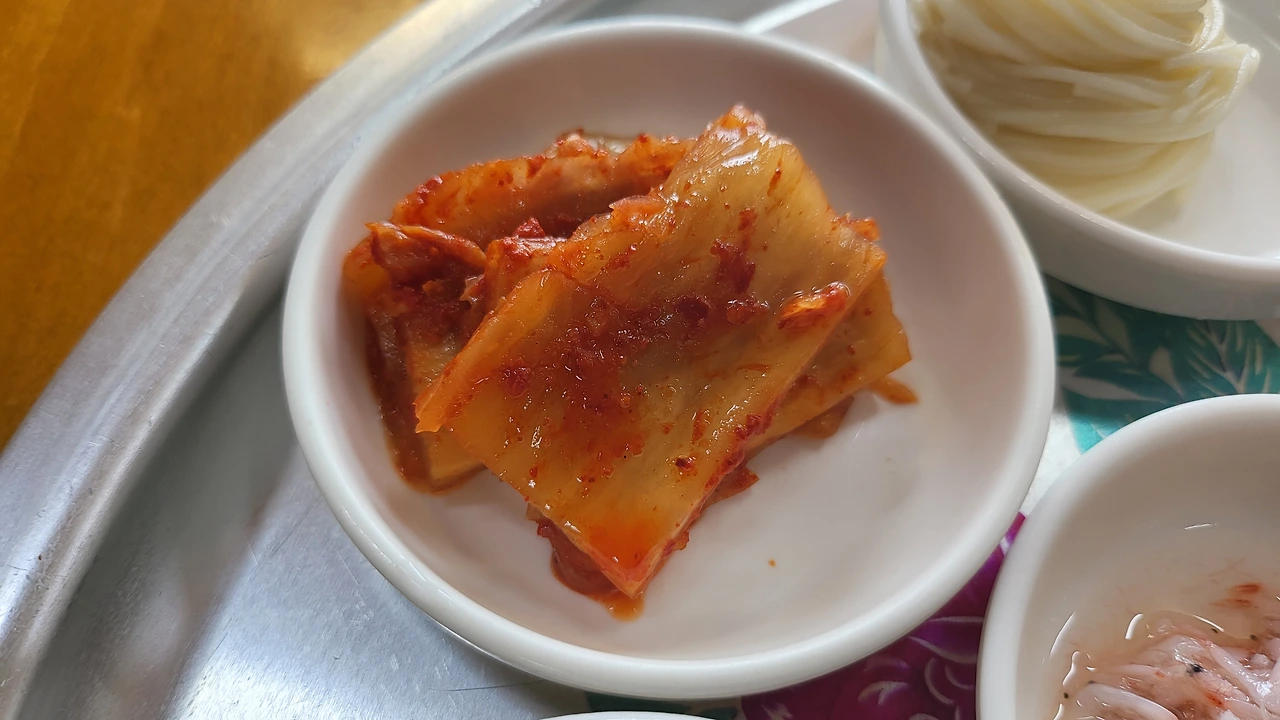 찬들은 단조로운데 김치가 역시 압권이다.