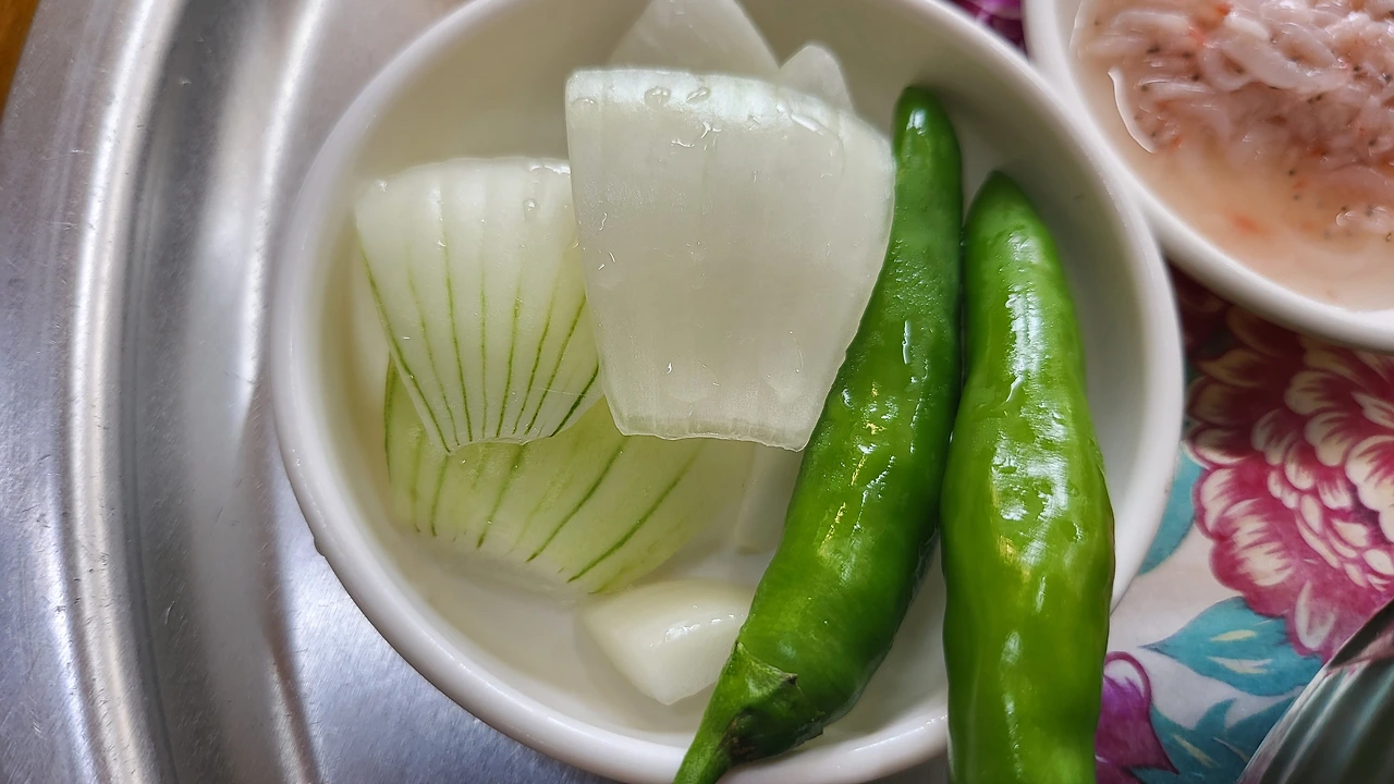 푹 익은 김치가 기가 막히는데 역시 제일식육식당도 새우젓을 풍부하게 준다.