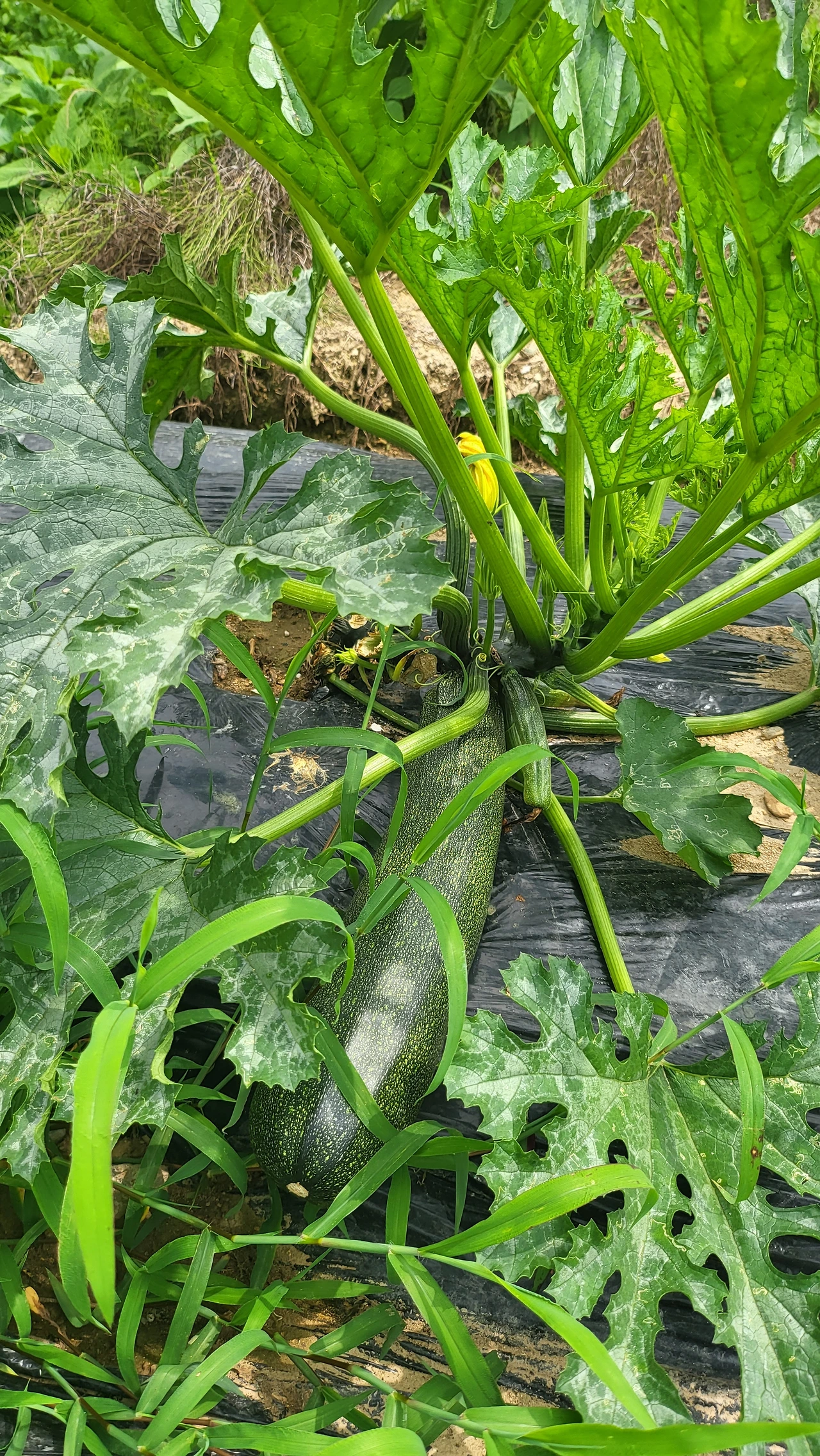 옥수수 한 줄, 들깨 한 줄, 쪽파 한 줄, 상추 한 줄 이렇게 자라고 있었는데 구석에 보니 쥬키니호박이 내 허벅지 굵기로 자라고 있었다.