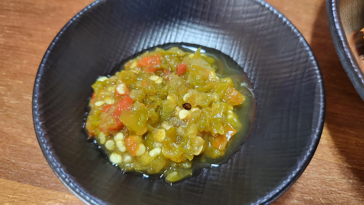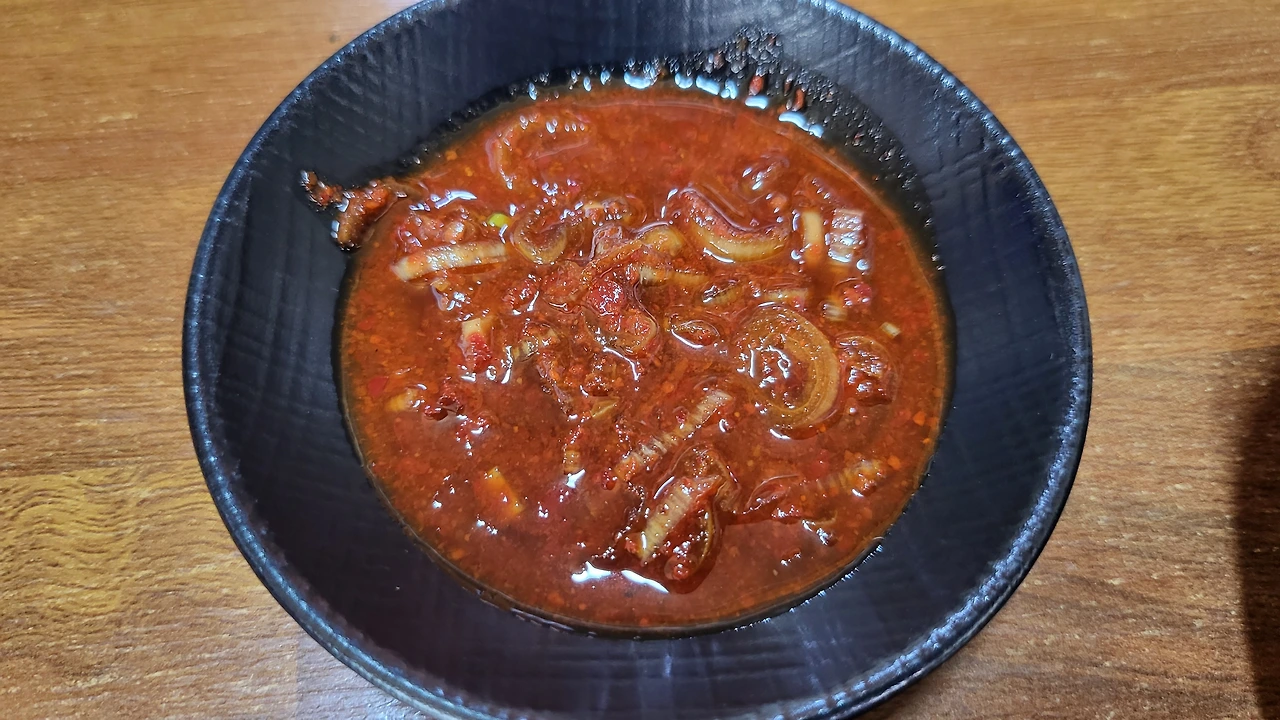양념장을 잘 섞어 맛을 볼 준비를 마쳤다.